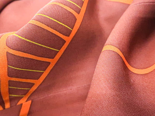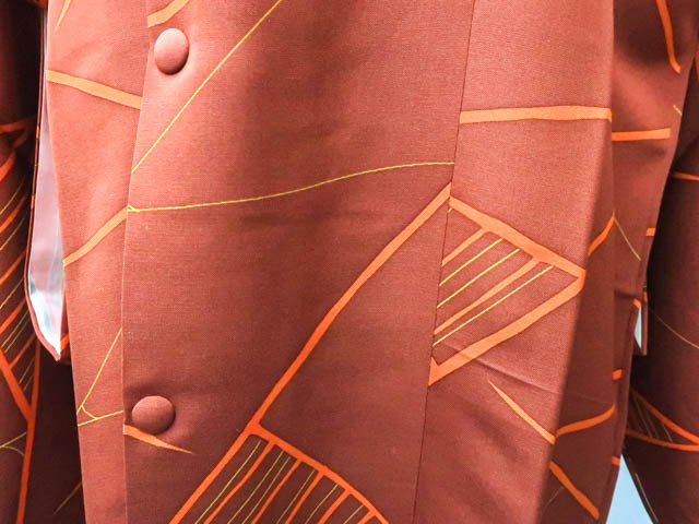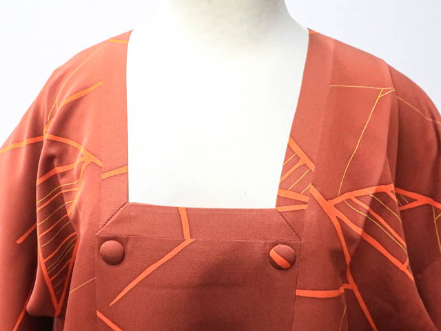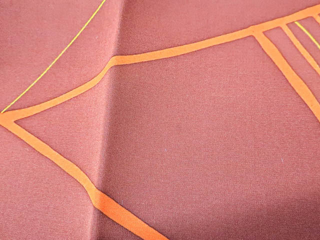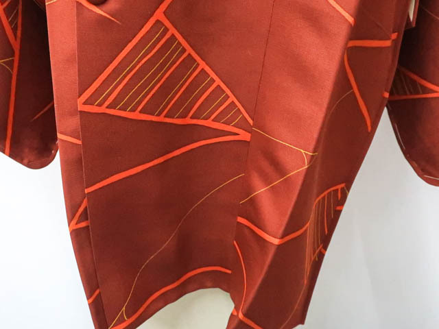 リサイクル商品のため、右袖後ろに薄汚れがございますがご着用いただけると存じます。 地色は くすみ赤です。 1枚目の画像が近いお色かと思われます。 素材は正絹です。 |