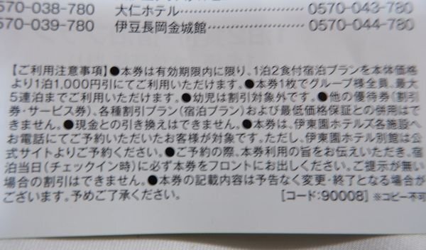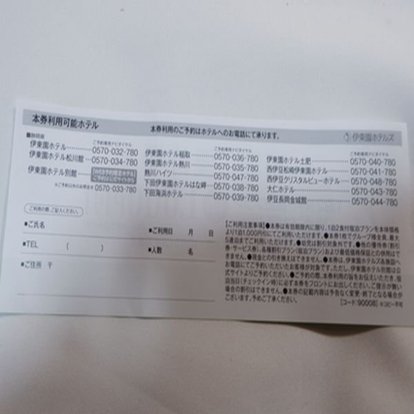 伊東園ホテルズ ご優待券 1泊2食付き宿泊プラン 1名1000円引きグループ全員b 10/31泊迄 送料無料