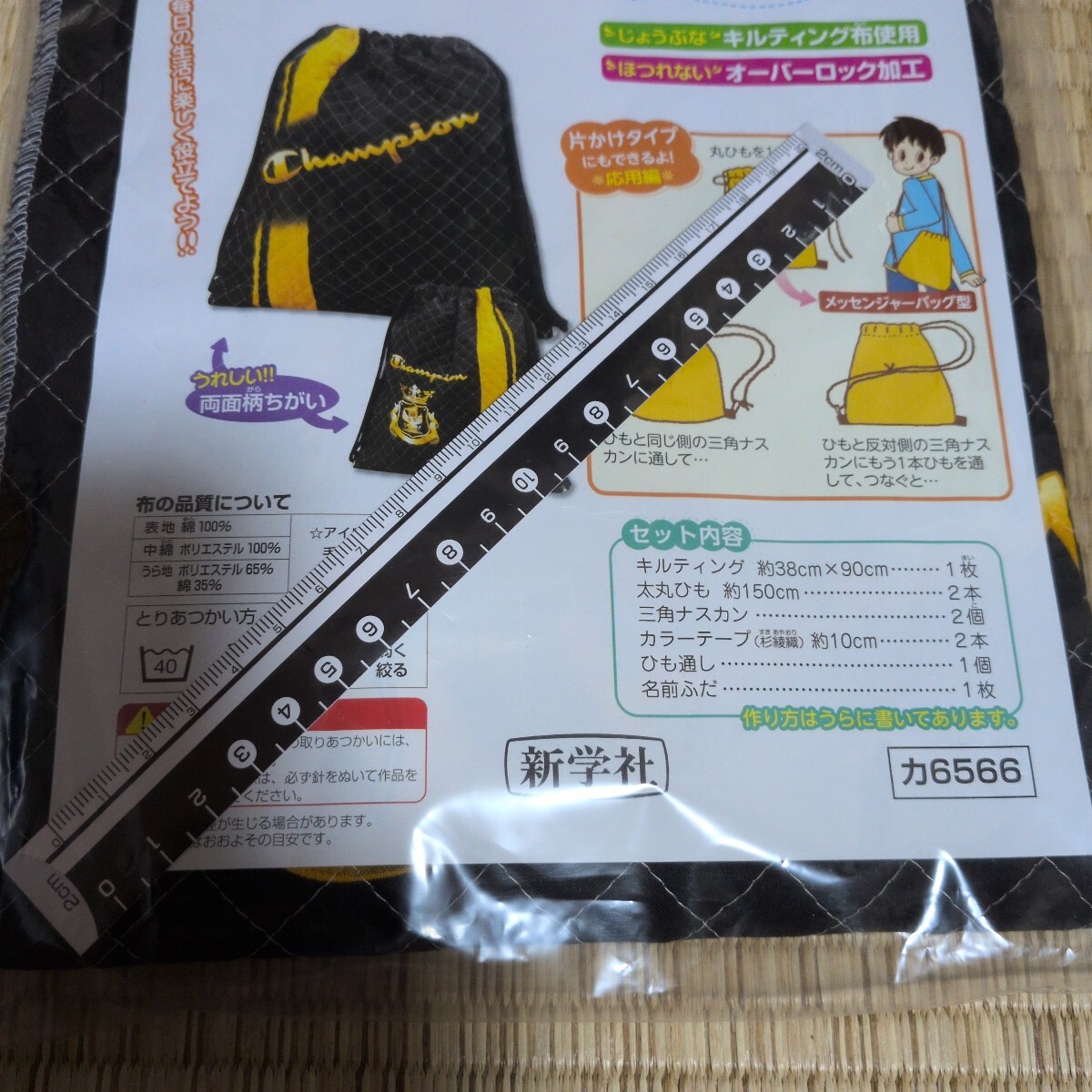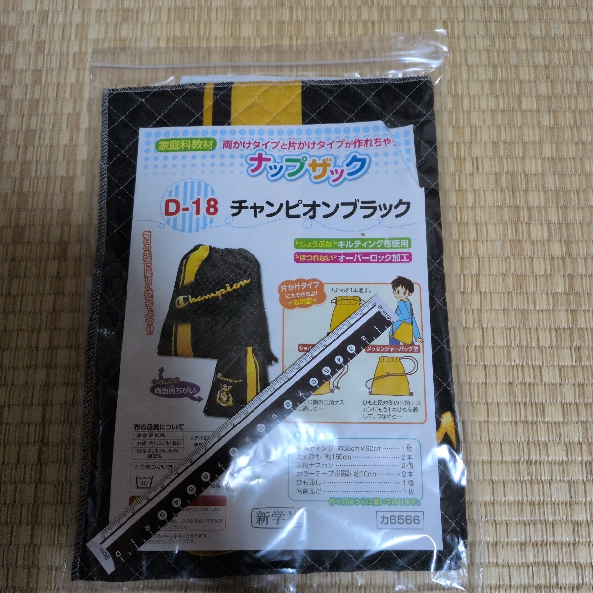 作成キット ナップザック チャンピオンブラックです。これで最後になります。商品は、写真の通りです。学校の斡旋と同じです。2年前関係者から入手しました。不明な点はご質問を。