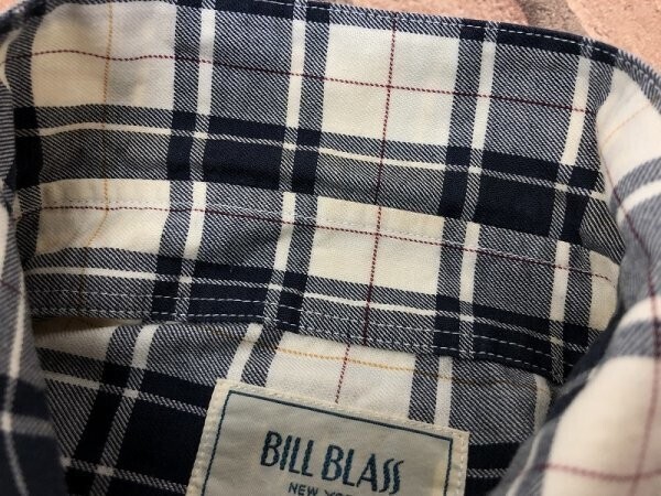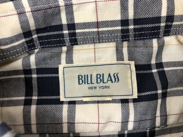 BILL BLASS メンズ ポケット付き チェック 長袖シャツ L 紺アイボリー です。