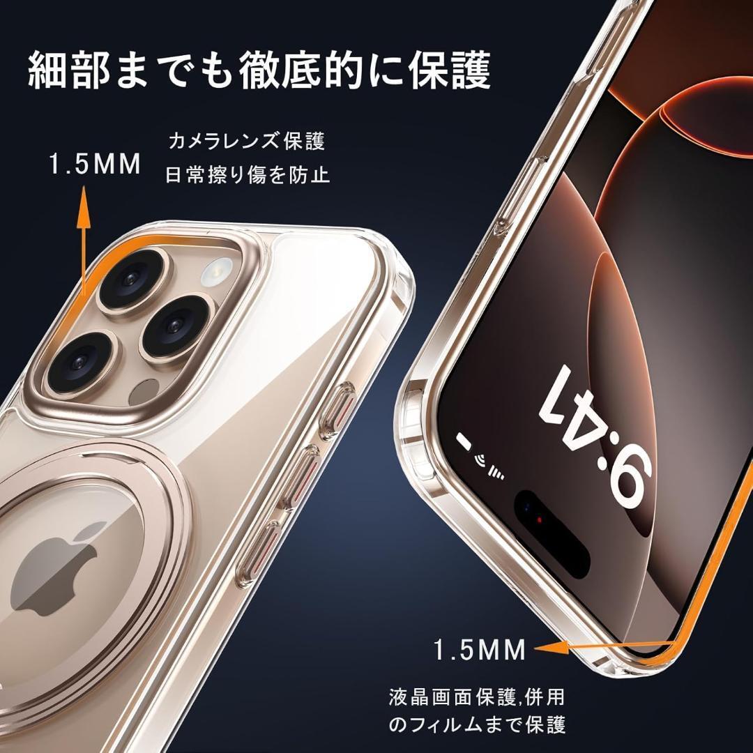 NO.S7-112★iPhone 16 Pro 用 ケース Magsafe対応 360度回転スタンド アイフォン16プロ カバー 縦横多角度対応 Uovon スマホケース アイホン 16pro 携帯ケース ワイヤレス充電 車載ホルダー 対応 ストラップ穴付き 透明 指紋防止 黄防止 ・ クリア デザート