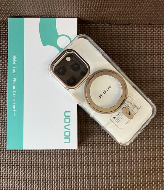 iPhone 16 Pro 用 ケース Magsafe対応 360度回転スタンド アイフォン16プロ カバー 縦横多角度対応 Uovon スマホケース クリア デザート
