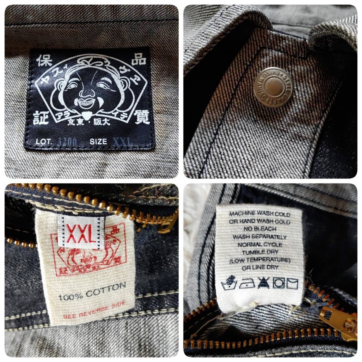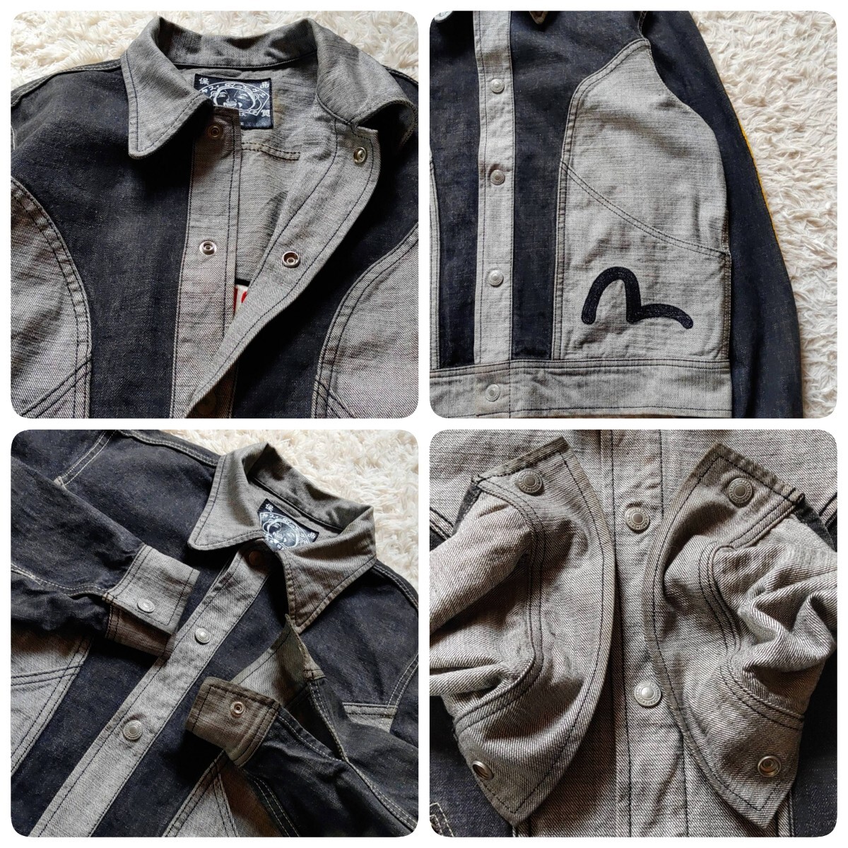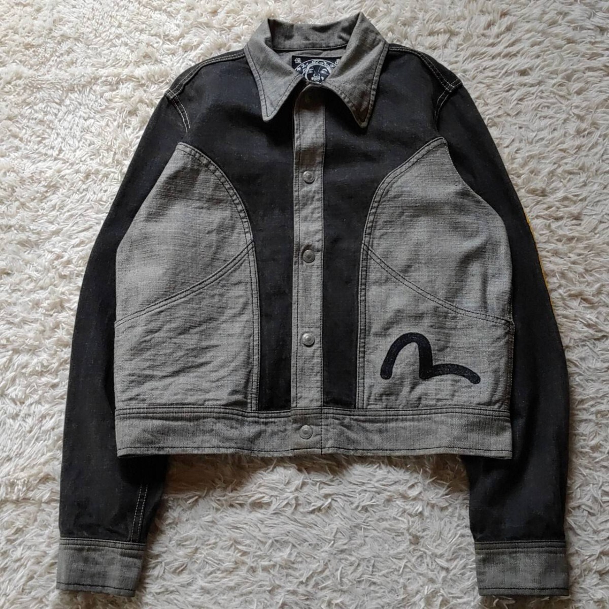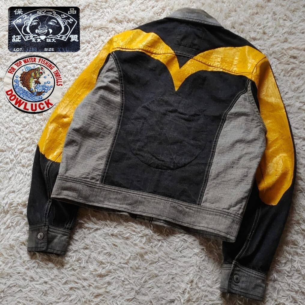 EVISU エヴィス ビッグカモメ ブラックバス リバーシブル ブラック デニムジャケット ファースト Gジャン 大戦モデル 大黒 カモメ ペイント 2XL
