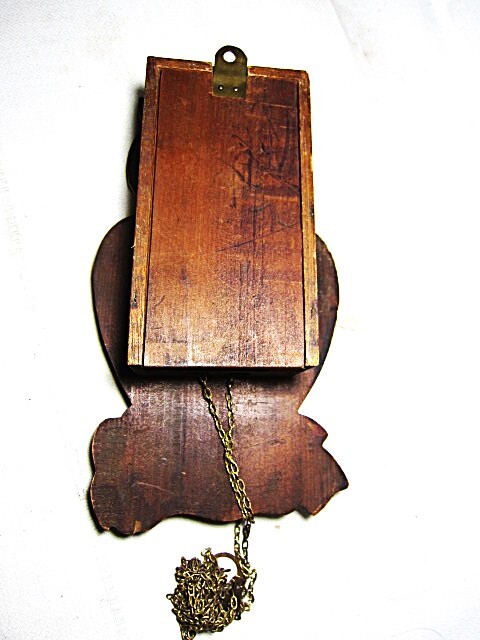 動作品 ミケン 目玉時計 振り子 分銅式 掛け時計 です                                                                                                                 機械は 問題なく動くのですが 時計の 針の 穴が緩く取れますので 調整が 必要です                                                                                                                                    その他 画像にて判断の上 細かいことが気になる方は 入札をご遠慮ください                                                                                                                                   ノークレームにてお願いします                                                                                                                              サイズは 幅 約145mm 高さ 約260mm 厚み 約80mm です                                                                                                          その他の商品もご覧ください