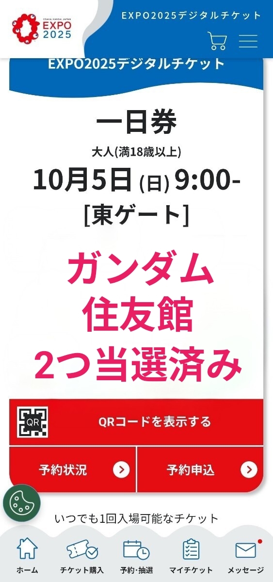 ●朝9時から入場できて、大人気パビリオン2つに当選しています。沢山のパビリオンを体験されたい方是非よろしくお願い致します。