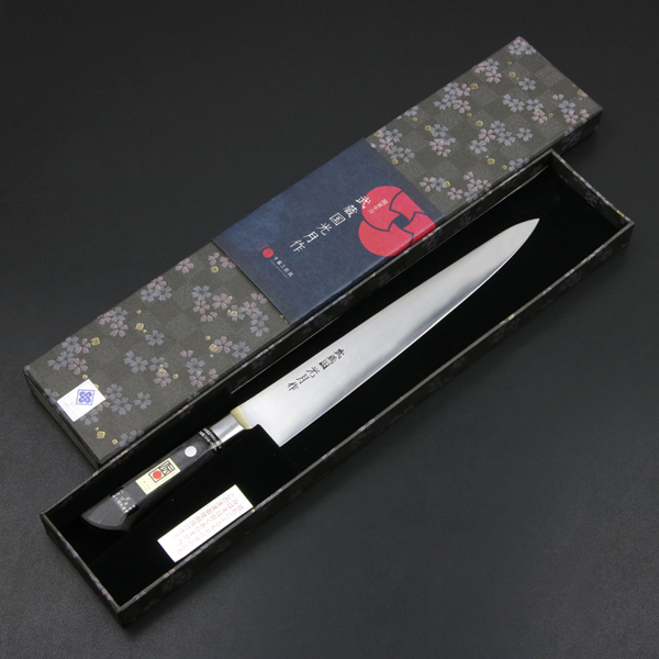 当商品は日々技術向上に励む鍛冶職人の八間川義人氏が手掛け、千葉県の伝統的工芸品の指定を受けた筋引包丁です。