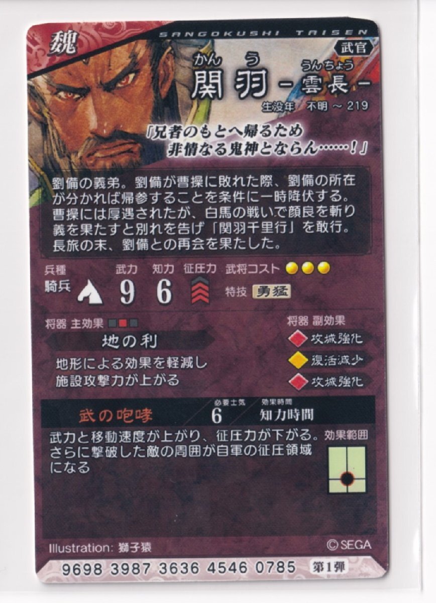 三国志大戦4 旧枠 魏 1弾 SR 関羽 武の咆哮 地の利 コレクション用 【3子09】