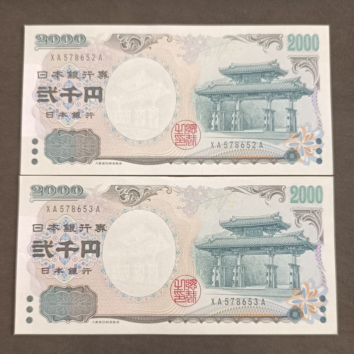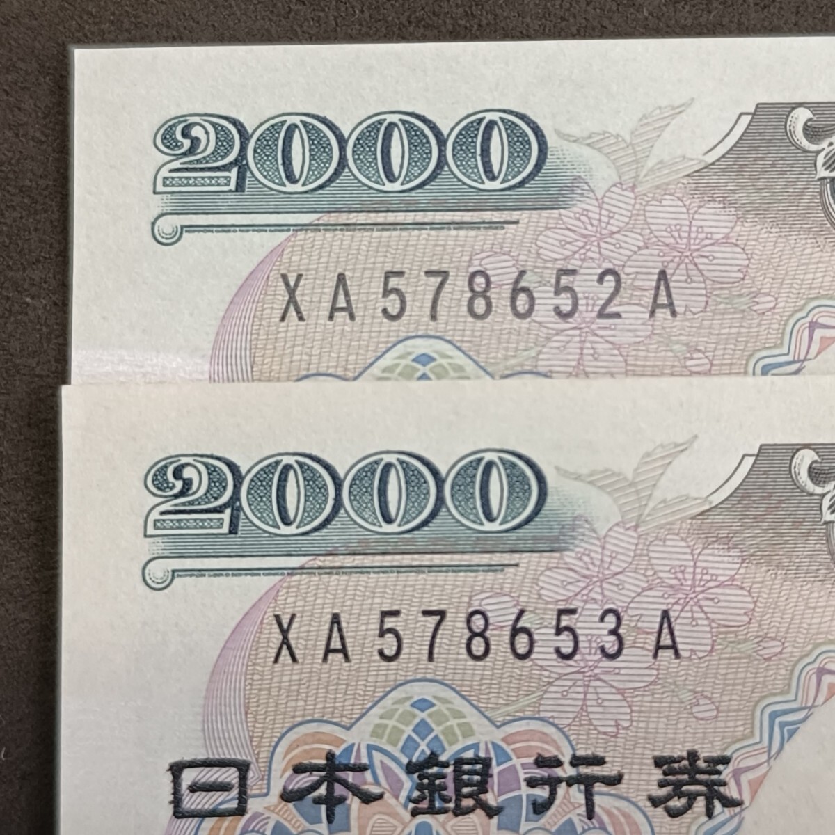 二千円札 2000円札 ピン札 アルファベット XA番 連番 XA578652~3A