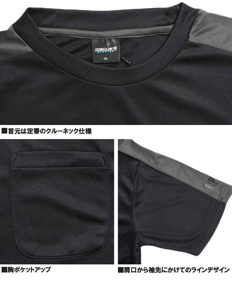 | 商品名 | 【新品】 2L ブラック DISCUS ディスカス 半袖 Tシャツ メンズ 大きいサイズ ロゴ プリント ドライ メッシュ 吸汗速乾 ラグラン カットソー |