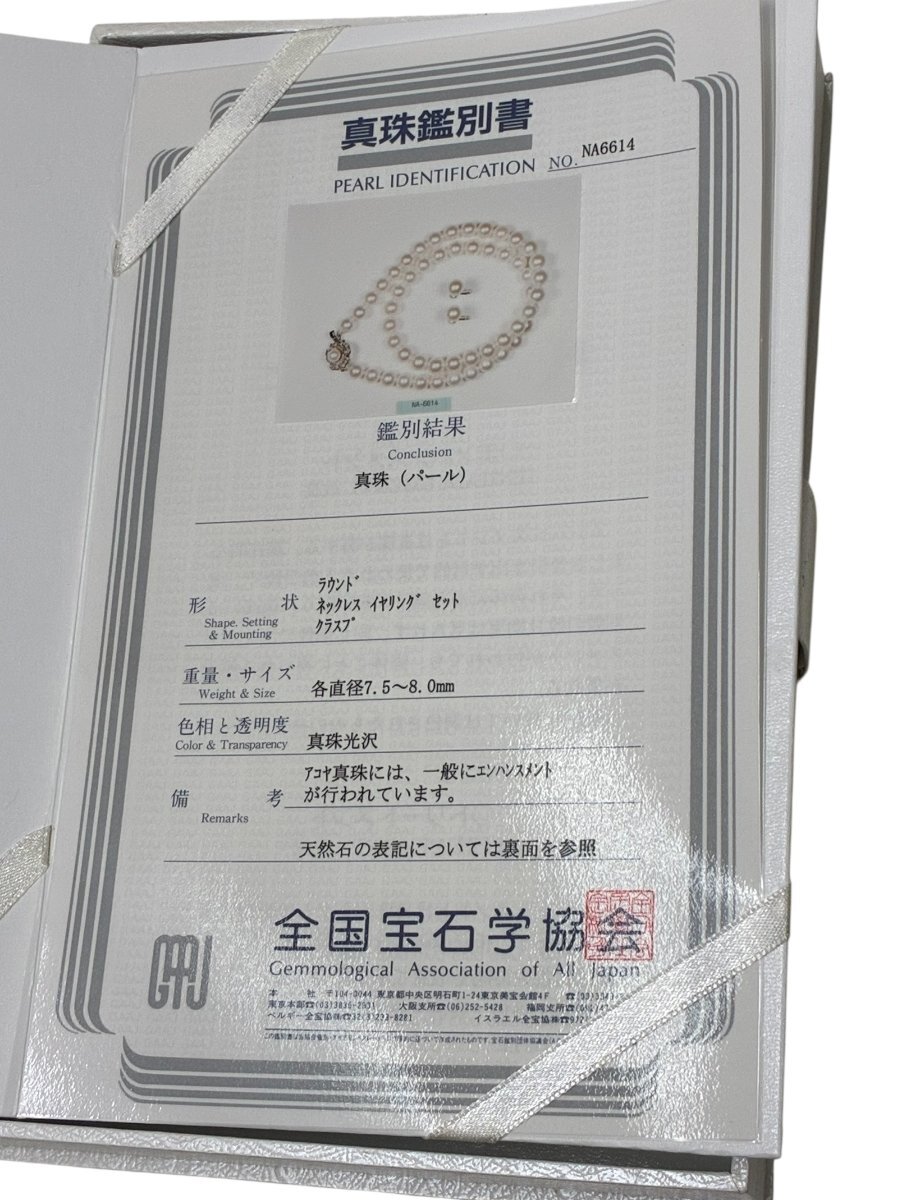 真珠鑑別書には、ネックレスイヤリングセットと記載ございますが