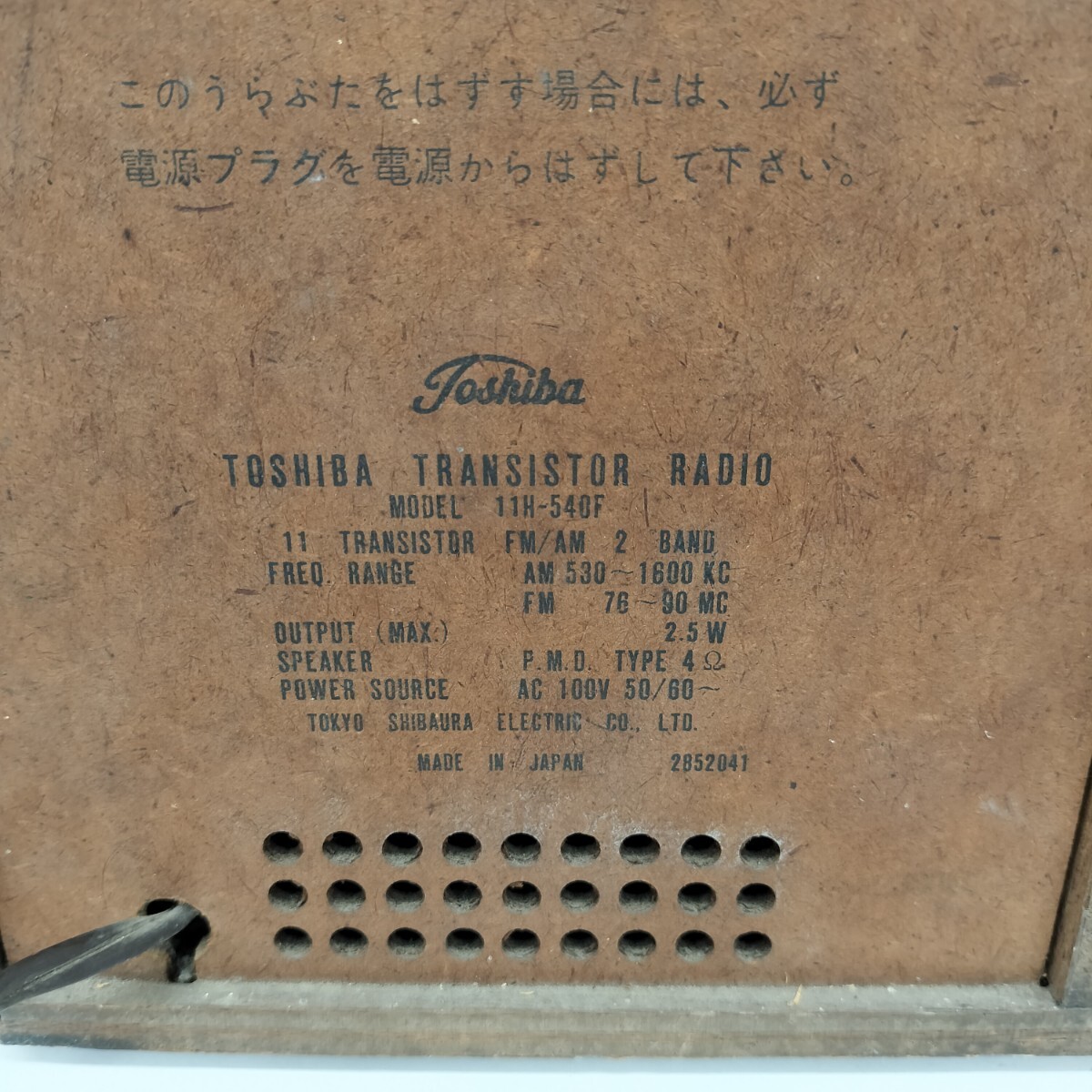【25*10008】TOSHIBA 東芝 トランジスタ ラジオ 真空管ラジオ 11H-540F 動作確認済 アンティーク 昭和レトロ 当時物 現状品 | |||