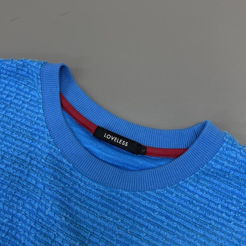 ラブレス 61P53-351-22 ロゴ プレート ブークレ オーバーサイズ クルーネック 半袖 Tシャツ 青 ブルー L