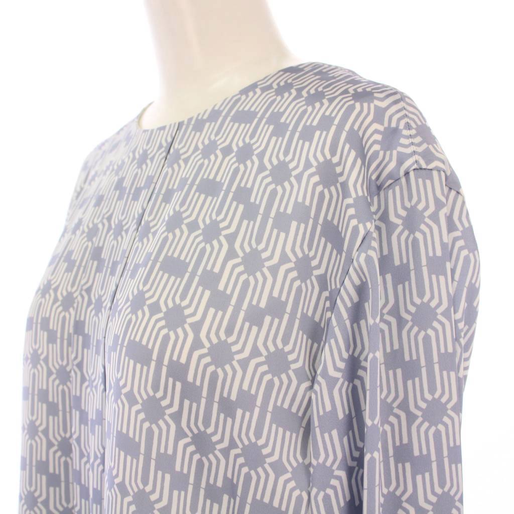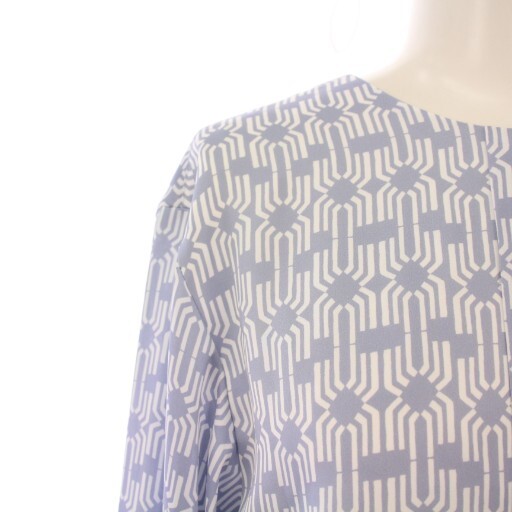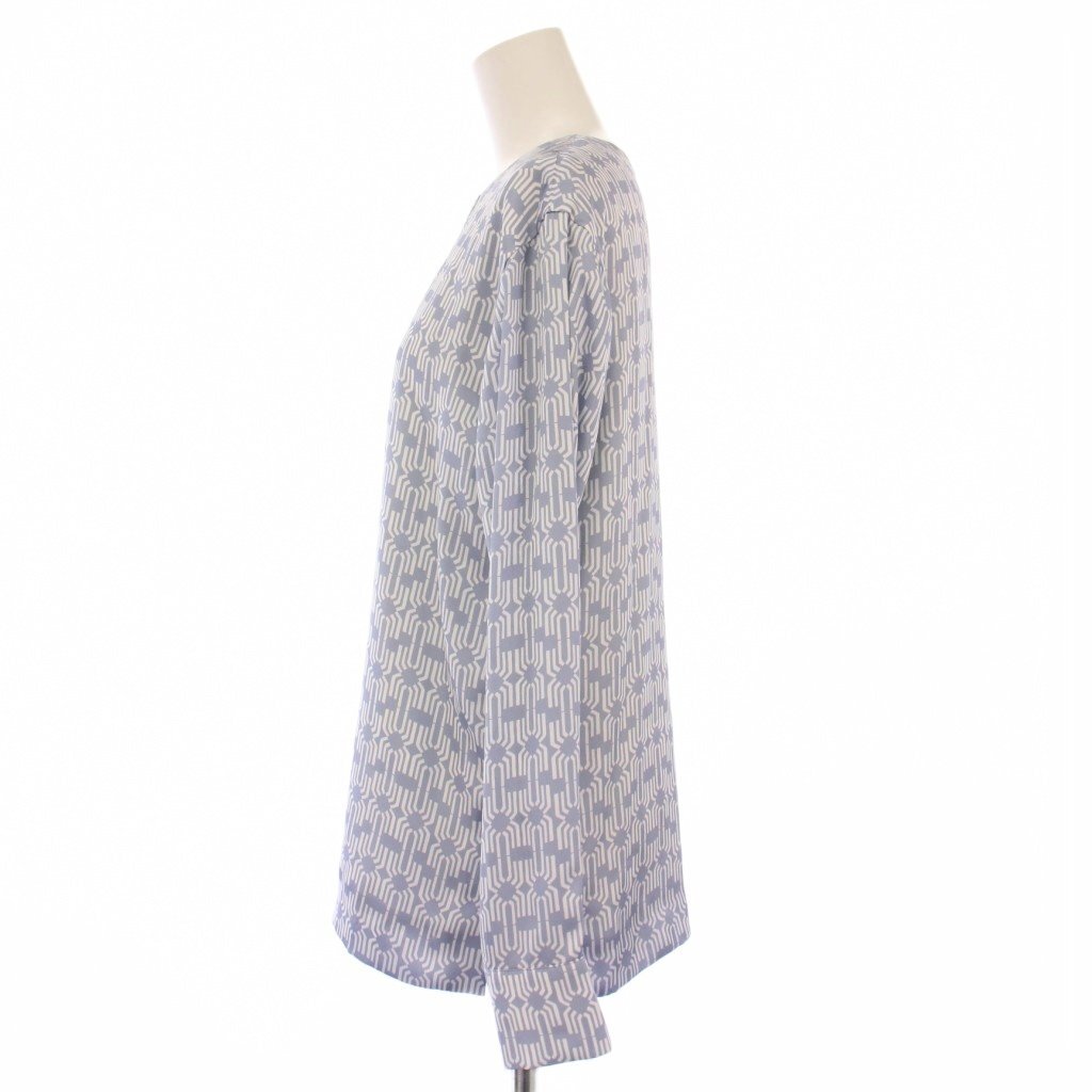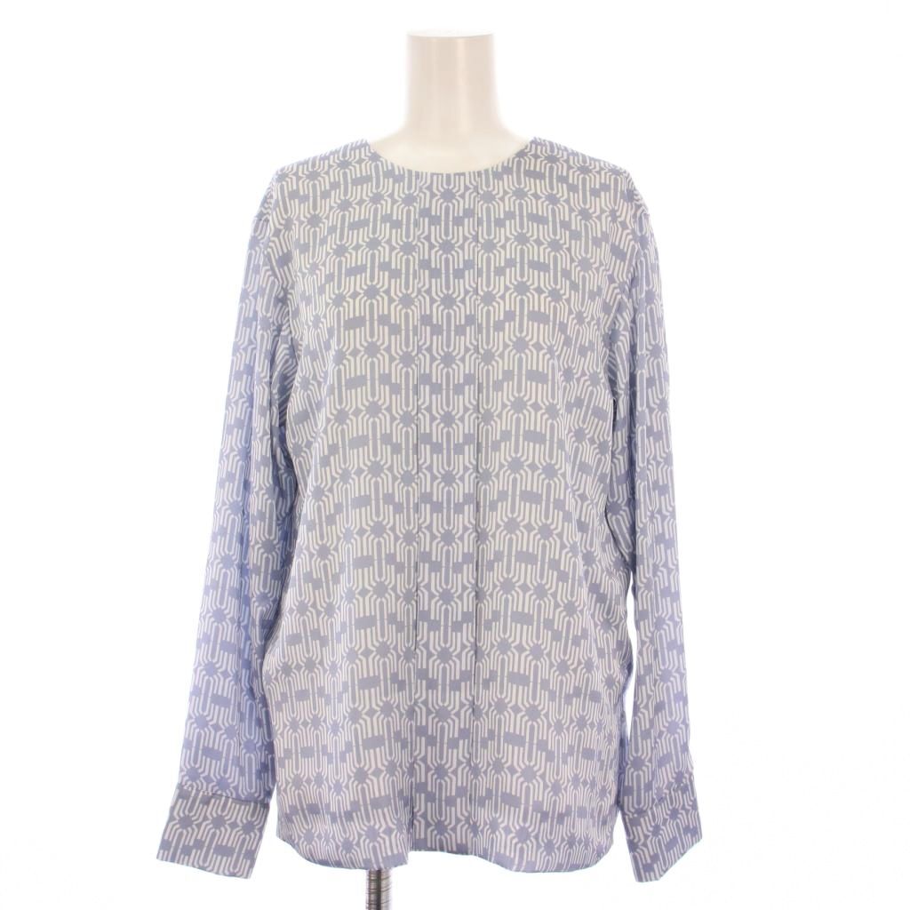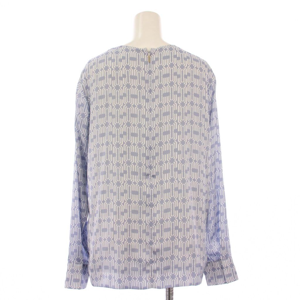 エポカ EPOCA シャツ ブラウス プルオーバー 長袖 クルーネック 総柄 バイカラー 40 水色 ライトブルー 白 ホワイト /BB レディース