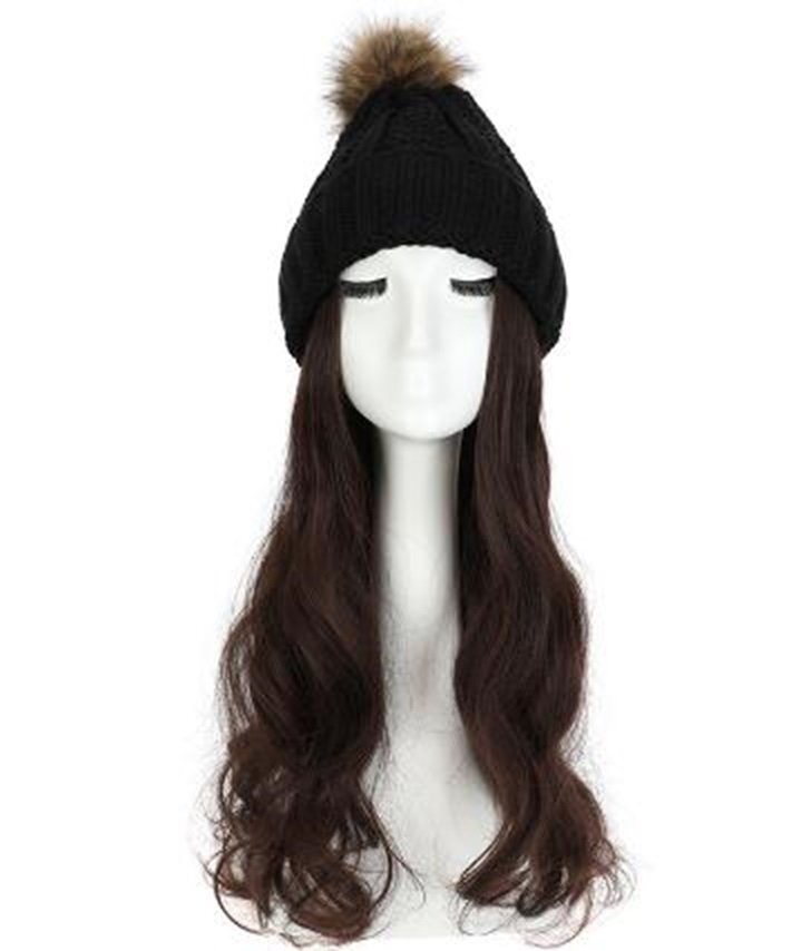 ウィッグ付きニット帽 ニット帽/ブラック ウィッグカラー/C ロングヘアー イメチェン 髪色チェンジ コスプレ