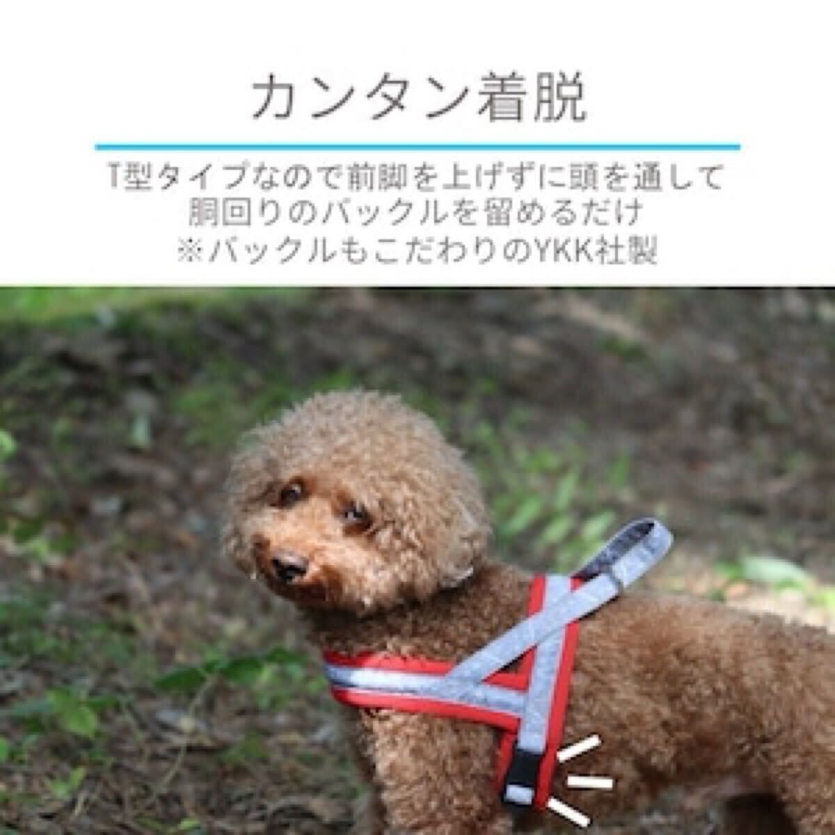 もうひとつは着脱のしやすさ。頭から被せて足を上げることなくバックルを留めるだけ。すごく簡単なので数秒あれば着脱ができるかと思います。忙しい時間のお散歩の時に着脱のしやすさは大きなポイントのひとつですよね(笑)。そうそう、バックルはYKKの高品質なバックルを採用しているので、その点でも抜かりはありませんYO。