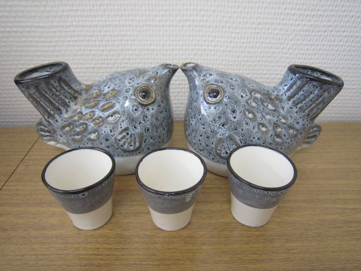 FUJI ふぐ 河豚 とっくり 徳利 おちょこ お猪口 酒器 5点セット 陶器 和食器