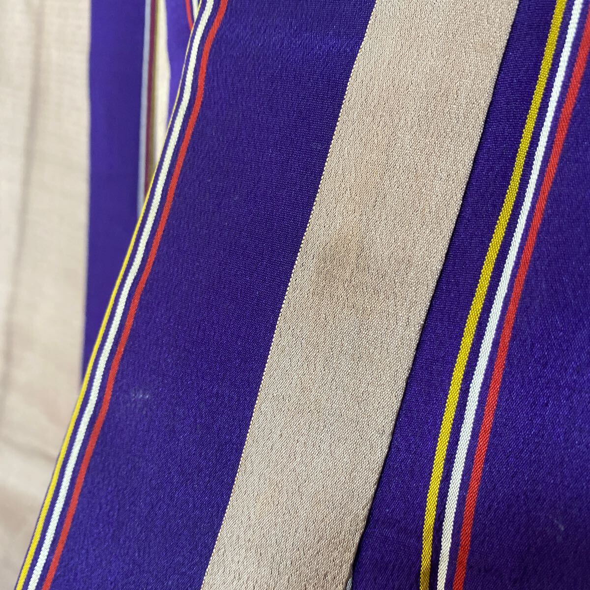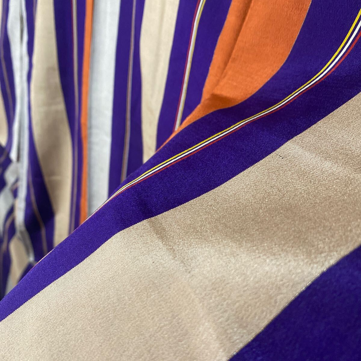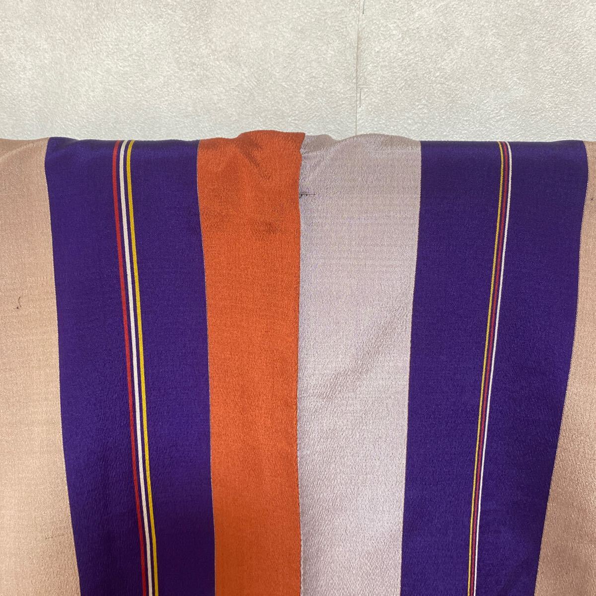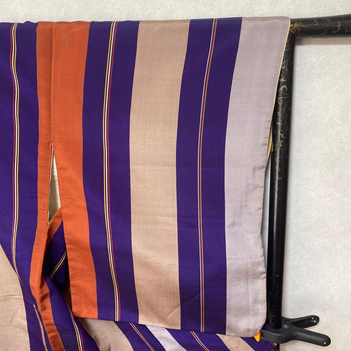 アンティーク 着物 正絹 バチ襟 縦柄 紫 オレンジ グレー昭和レトロ 大正ロマン モダン 和洋折衷コーデ リメイク 25こ01-4s