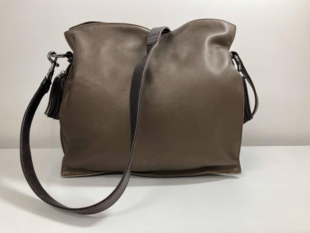 【商品情報】 ブランド名:LOEWE アイテム名:ショルダーバッグ サイズ:縦約27.2cm、横約28cm、奥行き約15cm ショルダー長さ:約113cm 内ポケット×3 【状態】 スレ 【付属品】 無し ・サイズに関しましては素人計測値になってしまうためご参考までにご確認ください。 状態をご確認の上ご入札お願い致します。 | ||||||