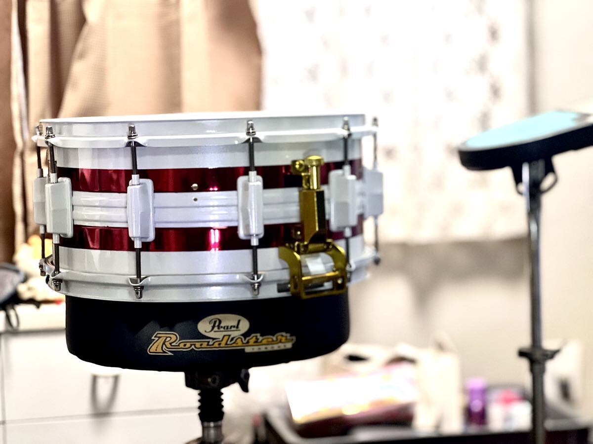 画像にドラム椅子練習パッド写っていますが、スネアドラム本体のみです。