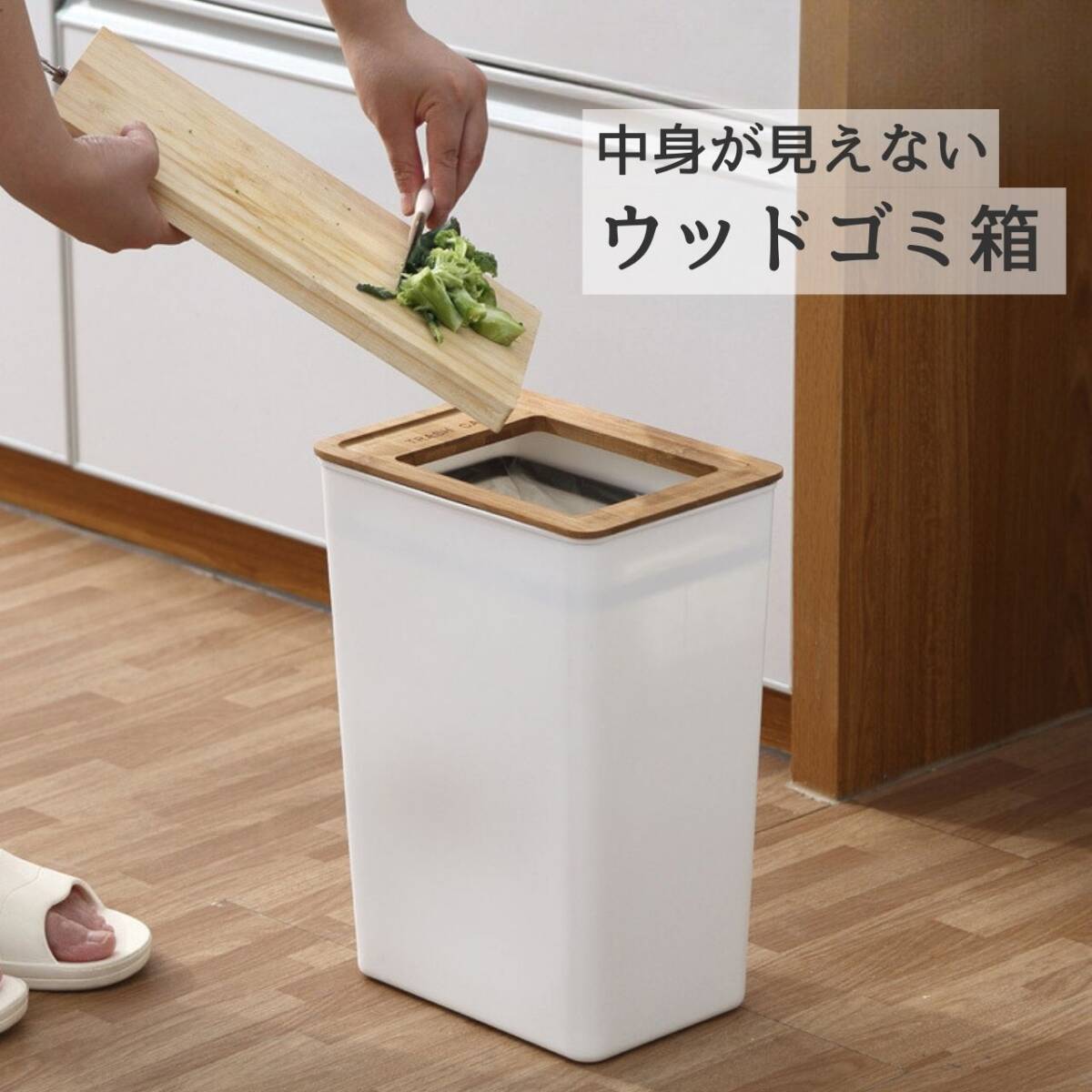 【商品詳細】〈内容量〉Sサイズ:7.5L〈サイズ〉Sサイズ:高さ25.5cm×横20.5cm×奥行16cm〈重量〉Sサイズ:550g【中身が見えないゴミ箱】ゴミ袋を見えないようにできるので清潔感を演出し、生活感を隠せる人気アイテムオシャレ度がグッと上がります【見せるゴミ箱】ワンポイントでウッド調の蓋が付いたお洒落なゴミ箱北欧テイストでお部屋のインテリアに馴染みます【使いやすいコンパクトサイズ】見た目も大きさもスリムなのに存在感があります【あらゆる場所で大活躍】リビング、キッチン、寝室、洗面所などでお使いいただけるのはもちろん、オフィスやお店などでもお使いいただくことが可能です!