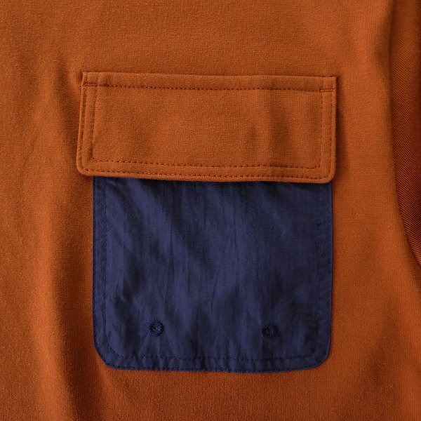 シンプルな中にさりげないアクセントを効かせた、布帛ポケット付き長袖Tシャツ。 胸元のポケットは実用性だけでなく、デザインのポイントとしても存在感を放ち、コーディネートに程よい遊び心をプラスしてくれます。 ゆったりとしたシルエットでリラックス感があり、裾にはドローコード付きで、シルエットの変化もお楽しみ頂けます。 デイリーウェアとしてはもちろん、アウトドアやレジャーシーンにもぴったりのアイテムです。 生地にはリサイクル天竺を使用。 柔らかく快適な肌触りと優れた通気性を兼ね備えており、長時間の着用でも快適さが続きます。 環境に配慮した素材を選ぶことで、サステナブルなライフスタイルをさりげなく後押ししてくれる一枚です。 |
