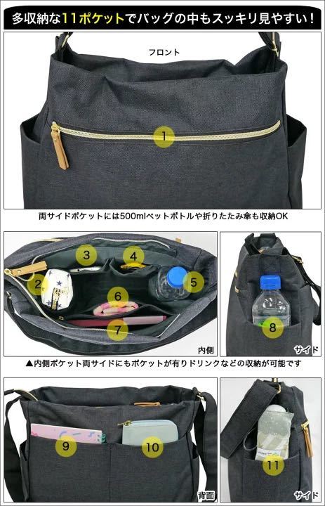 アネロ ショルダーバッグ マザーズバッグ ショルダー 軽い 背面ポケット 肩掛け バッグ ドリンクホルダー OL ママ 主婦 ミセス 無地 トラベル 買い物 おでかけ タウン 男女兼用 カップル おそろい カジュアル シンプル 大人可愛い プレゼント 10代 20代 母の日 誕生日 ブラック グレー ブルー ベージュ ピンク グリーン 黒 青 デニム 緑・【本体】(約)高さ29cm×横幅33-38cm×マチ11cm