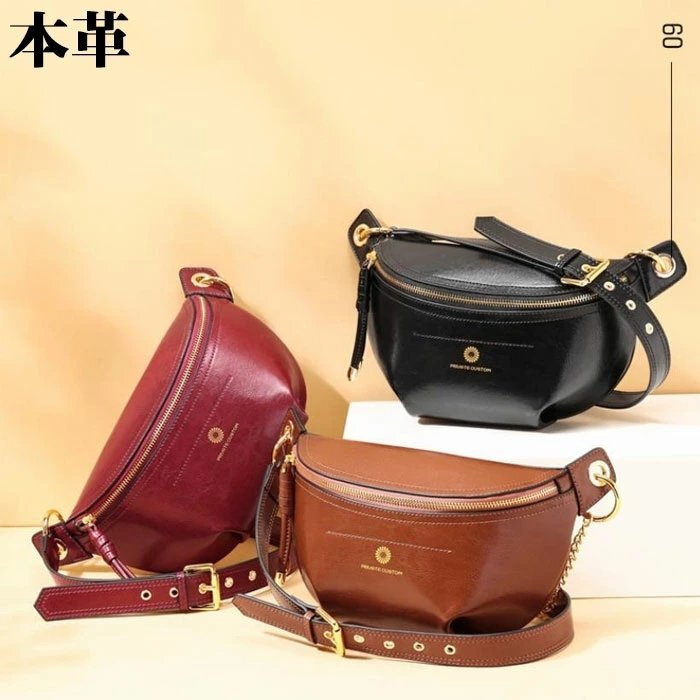 ショルダーバッグ レディース 2WAY 肩掛け 手提げ レザーバッグ 無地 通勤 アウトドア バッグ 柔らかい 本革 小さい鞄 かわいい☆レッド