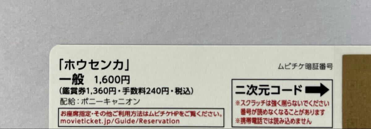 10/10(金) 公開の映画「ホウセンカ」のムビチケカード一般1名分、未使用です。