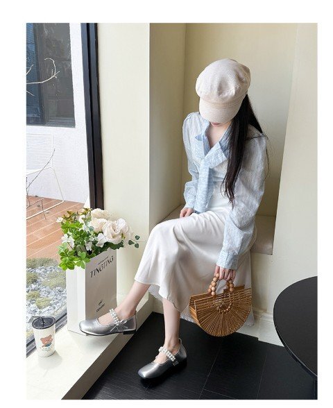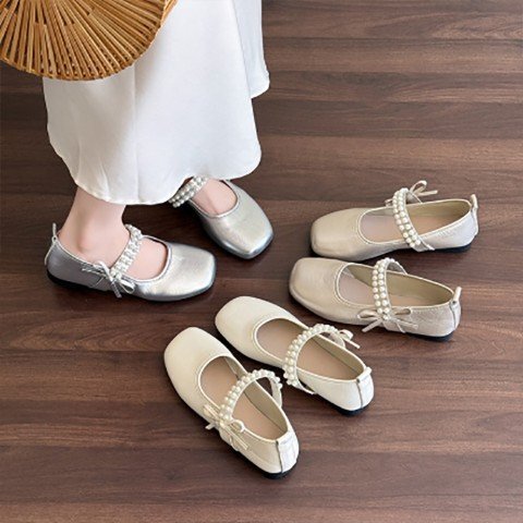 ・ころんと丸いつま先と華奢なビーズデザインで足元を演出。