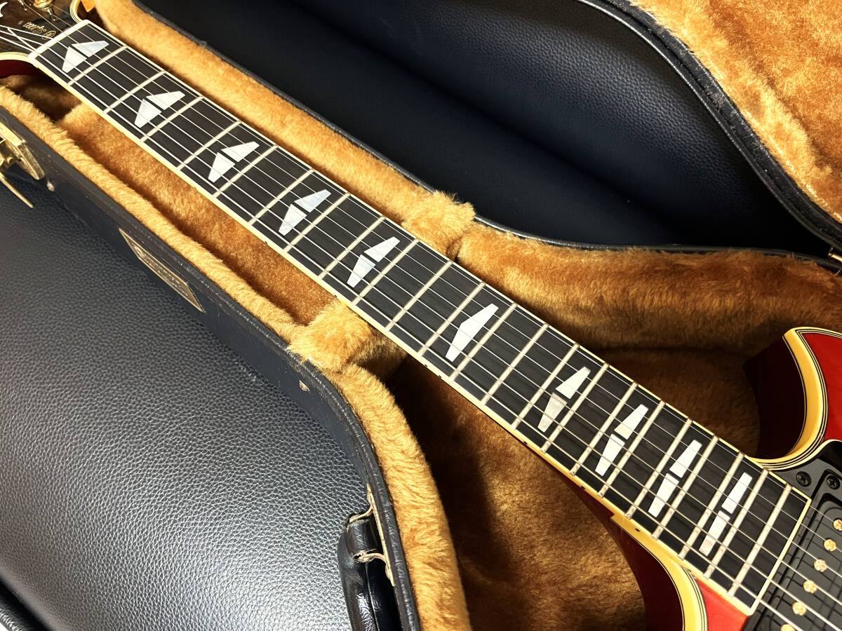 <2025 Premium SG Collection> 2025年特別企画として、希少&素晴らしいコンディションを有する貴重なSGを出品いたします。全世界のSGの中でも最高レベルの「Premium SG Collection」を新たなオーナー様として引き継いでいただきたく、是非とも御検討をお願いいたします! As a special project for 2025, I will exhibit valuable YAMAHA SG guitars with rare and fantastic conditions. We would like you to take over the highest level of "Premium SG Collection" in the world as a new owner! 1998年製SG2000 レッドサンバースト、の出品です。 出品に当たり、各部調整・給油、そしてビス1本に至るまで徹底的な磨き仕上げを施しました。 尚、当方出品のギターは全てフルオーバーホール、即ち、全部品を分解してチェック/クリーニング/再組立&調整を行い、初期性能状態にリカバリーする作業を実施しております。具体的には、電装系チェック、構成パーツの給油&清掃、ネック/フレットの調整、ボディの磨き上げ、組み立て後の最終チェック&調整を行い、1台1台丁寧に時間を掛け、機能/外観ともにベストな状態に仕上げ出品しております。 YAMAHA独自のスルーネック構造やロングサスティーンを可能にしたサスティーンプレート機構が最大の特徴で、SGスピリットの象徴的存在であるSG2000のパフォーマンスを最大限に高める仕様が満載です。本機はバイサウンドシステムが標準搭載された比較的近代モデルで、本オークションでも一般市場でもなかなか目にすることのできない希少品です。 本機は1998年製SG2000第七期モデルで、使用感があまり無くこれまで大切に扱われてきた個体で、コレクターズコンディションを有する極めて価値の高い逸品です。鮮やかなサンバーストフィニッシュと美しい豪華ゴールドパーツに加え、虎杢(タイガーストライプ)がくっきりと浮き出たメイプルトップを持つ美しい外観&プレイアビリティともに優れた超美品の本機を今後入手する事は極めて困難かと思いますので、SGファンの方々に自信を持ってお勧め致します。 この度、YAMAHA純正ハードケースをお付けして出品致しますので、是非とも入札下さいます様御検討お願い致します。 |