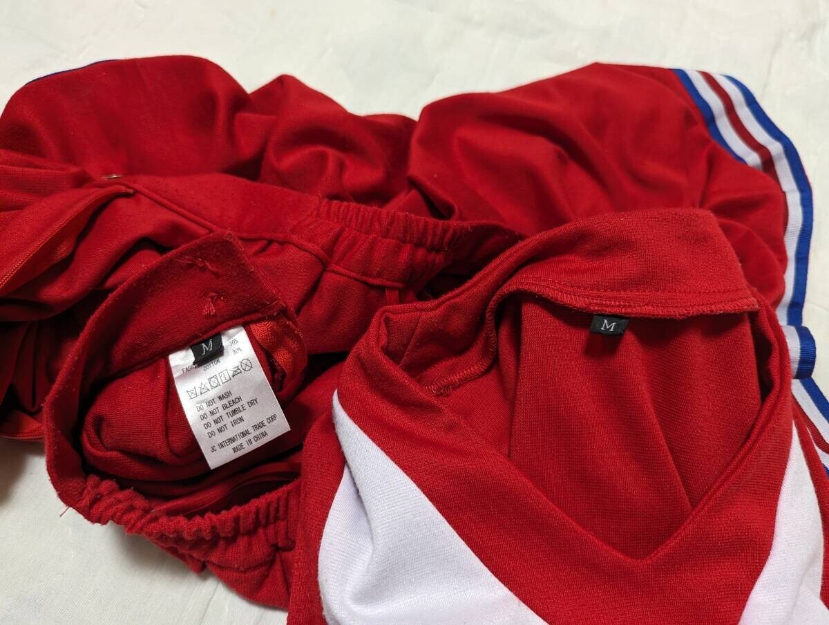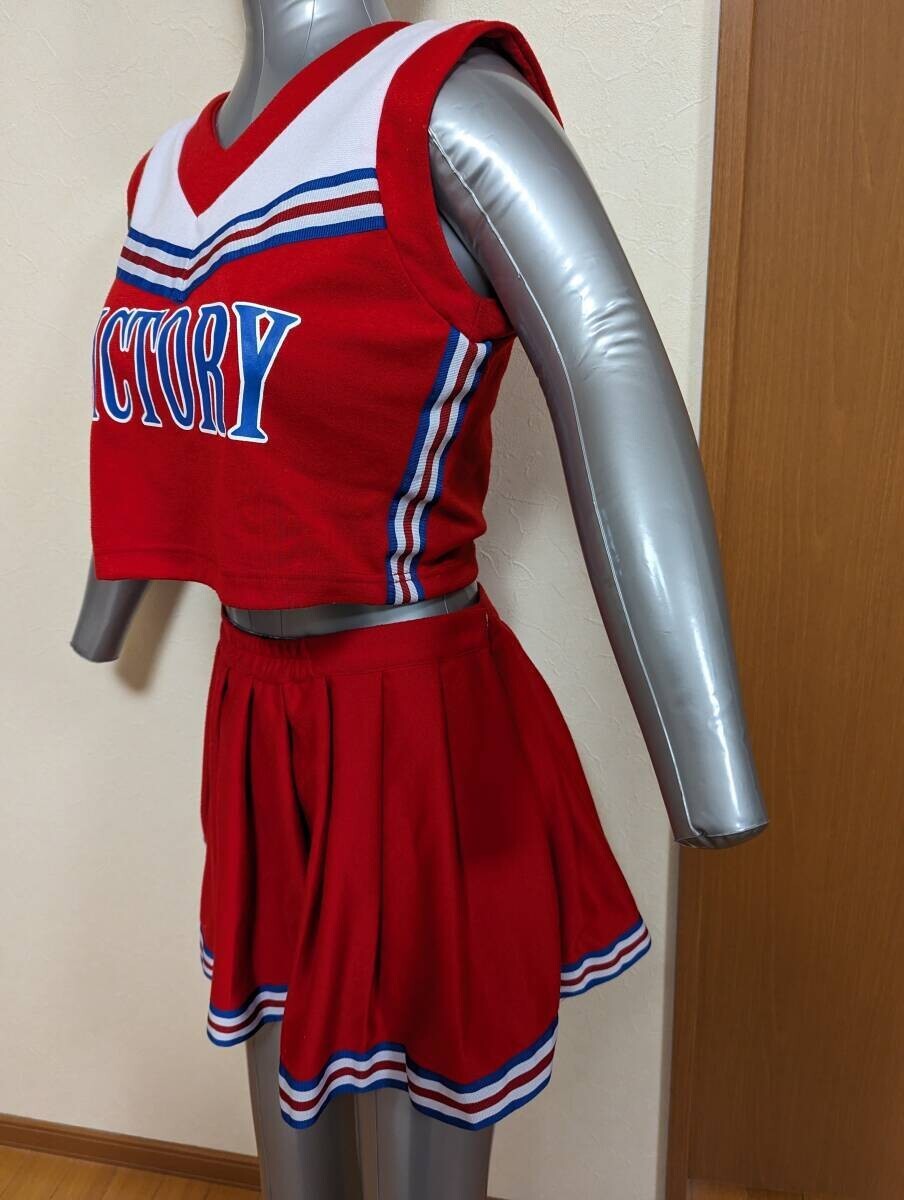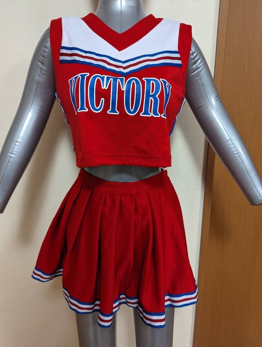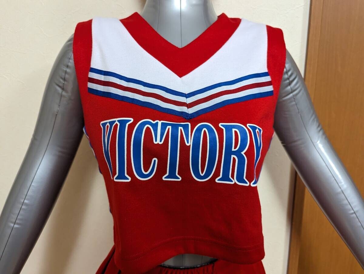 VICTORY チアリーディング・チアダンスユニフォーム 赤/白 サイズM リボン、ポンポン付