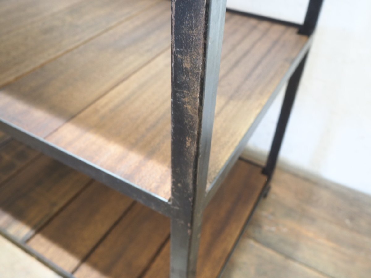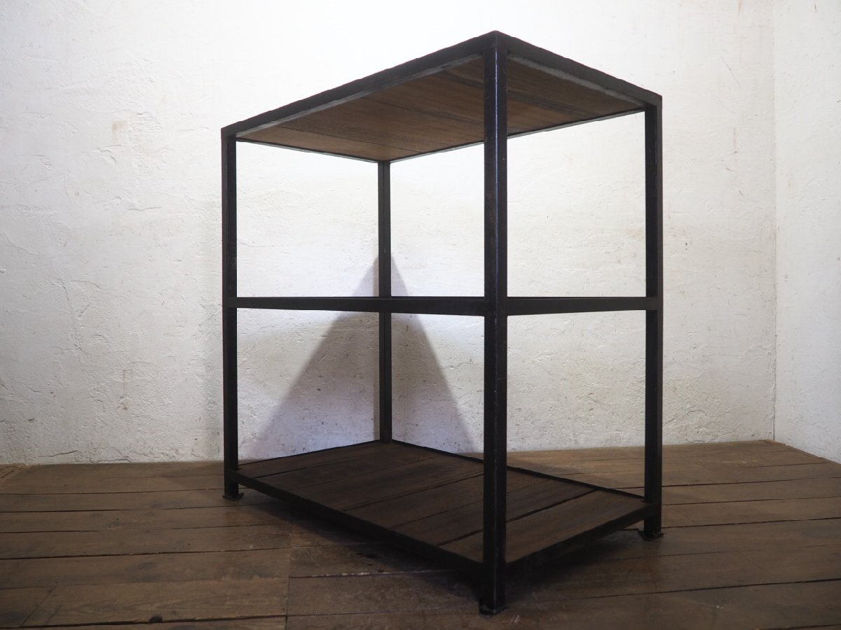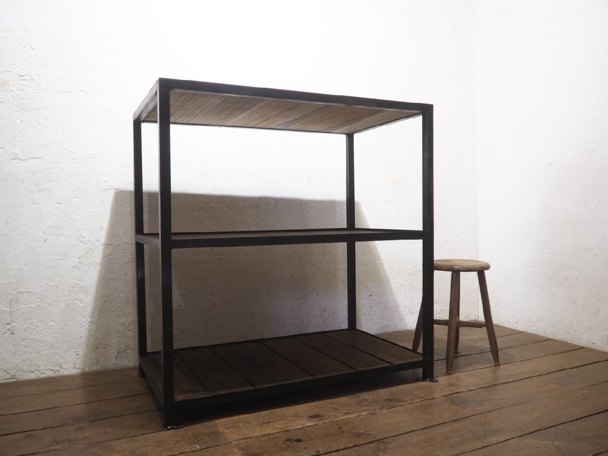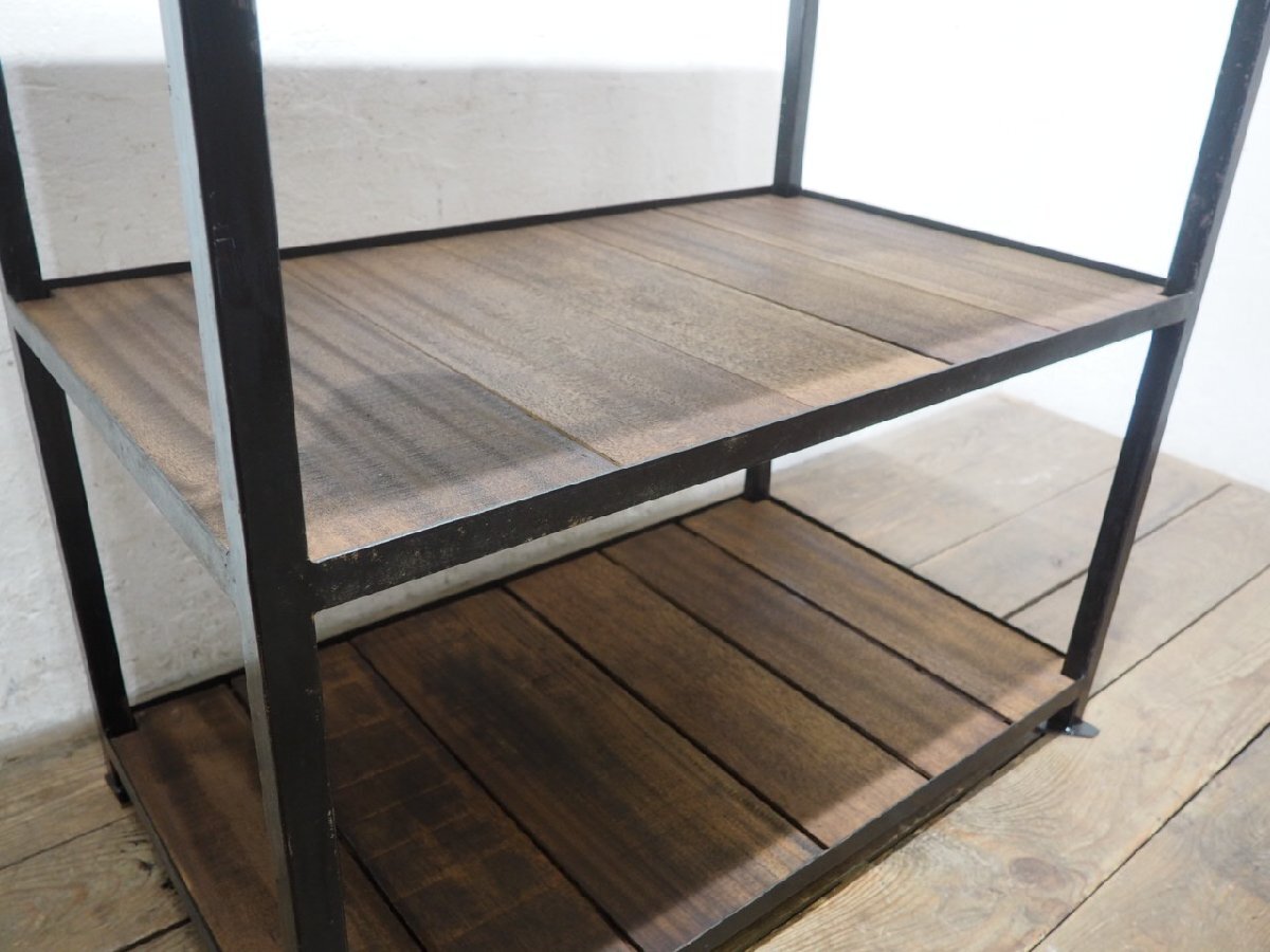 タ荷U0612◆H103,5×W100×D60(cm)◆ビンテージ◆古い木と鉄枠のアイアンラック◆工業系 陳列台 飾り棚 インダストリアル レトロR(ヤD)松