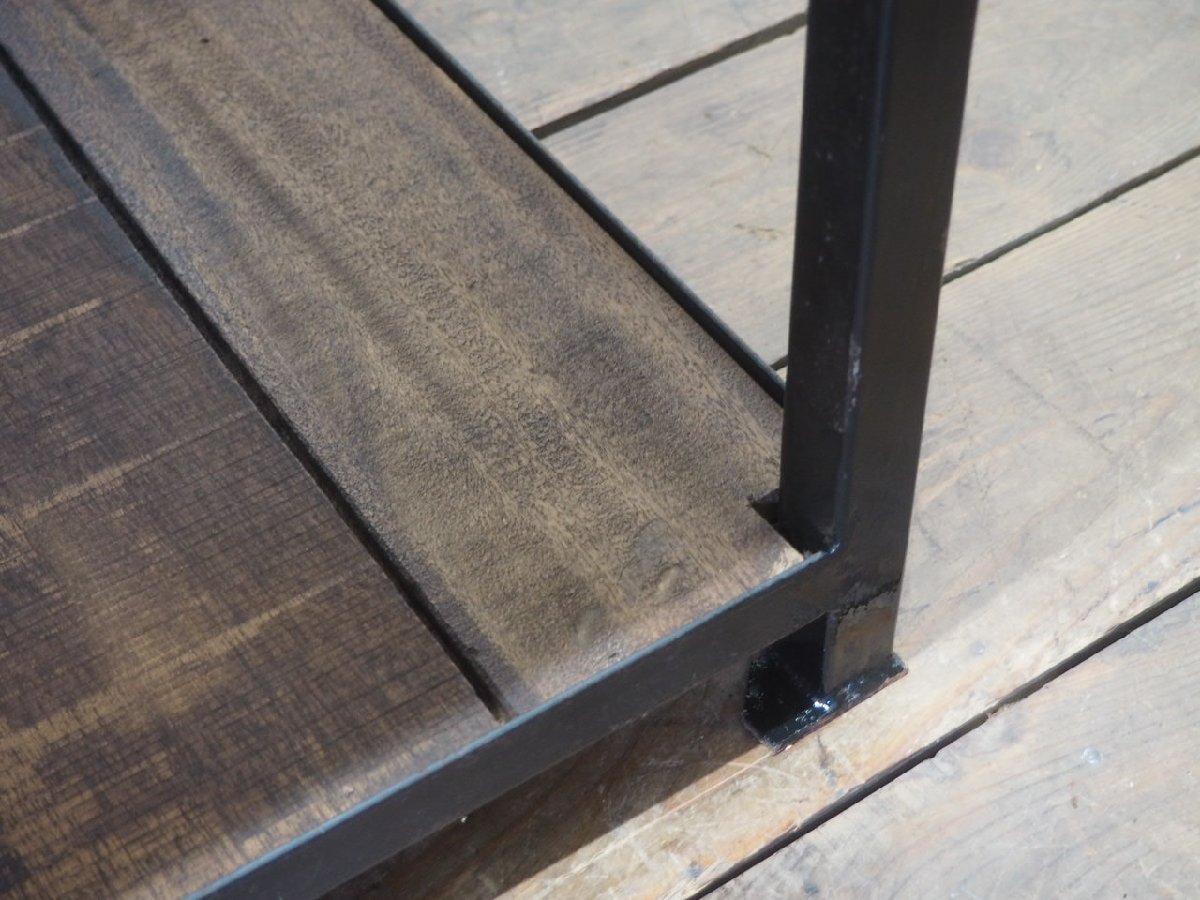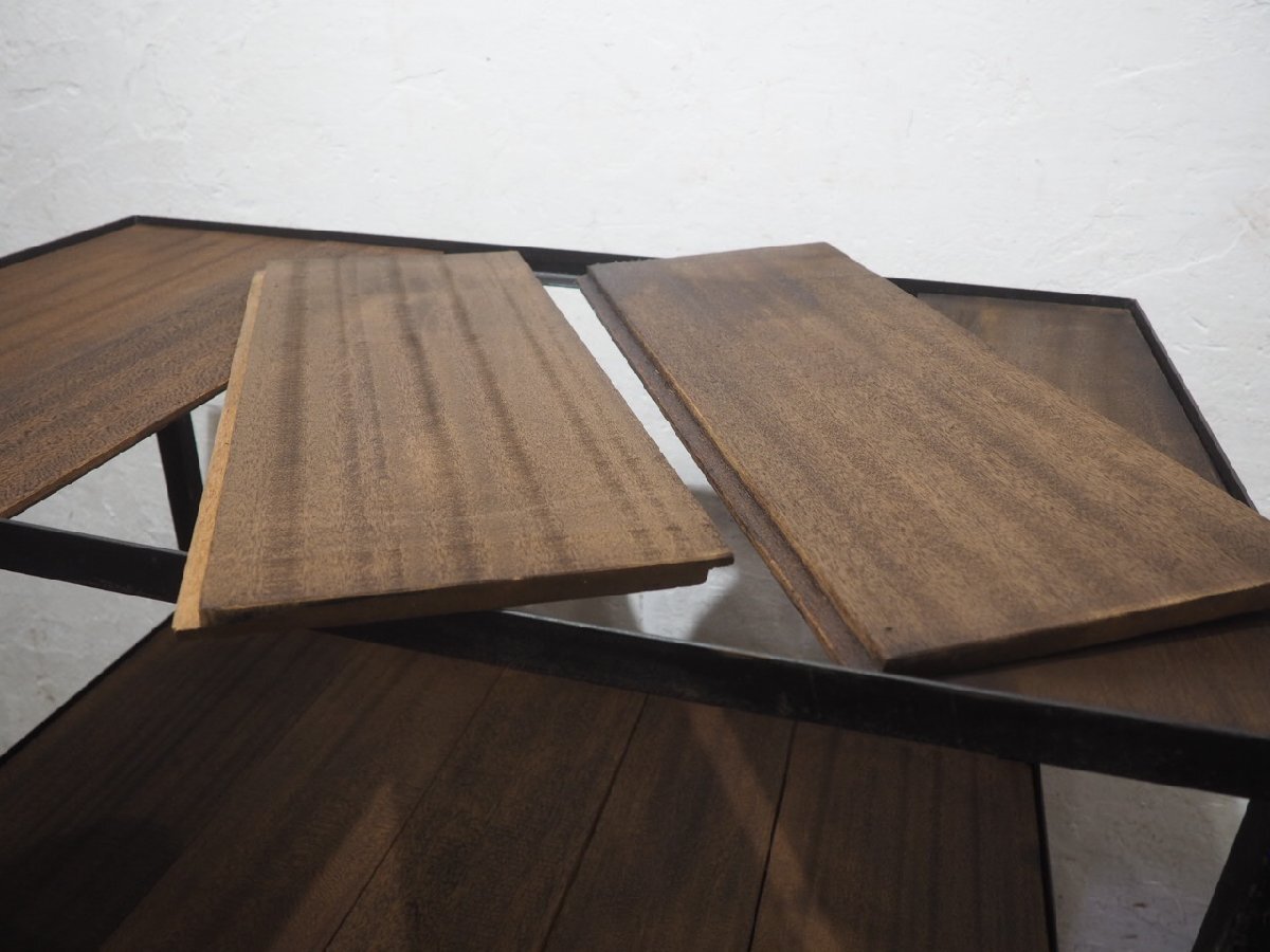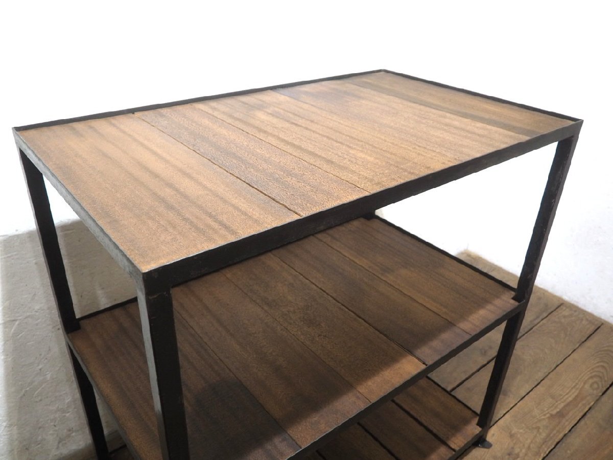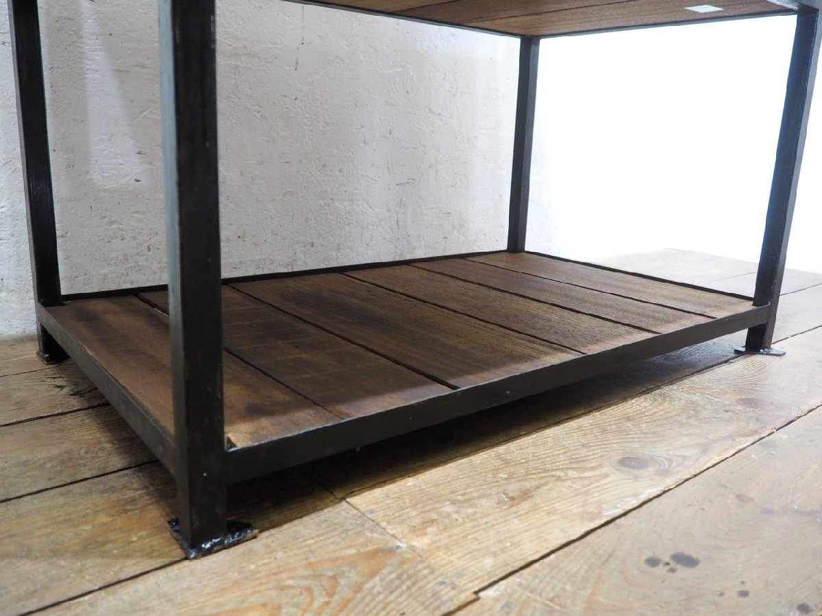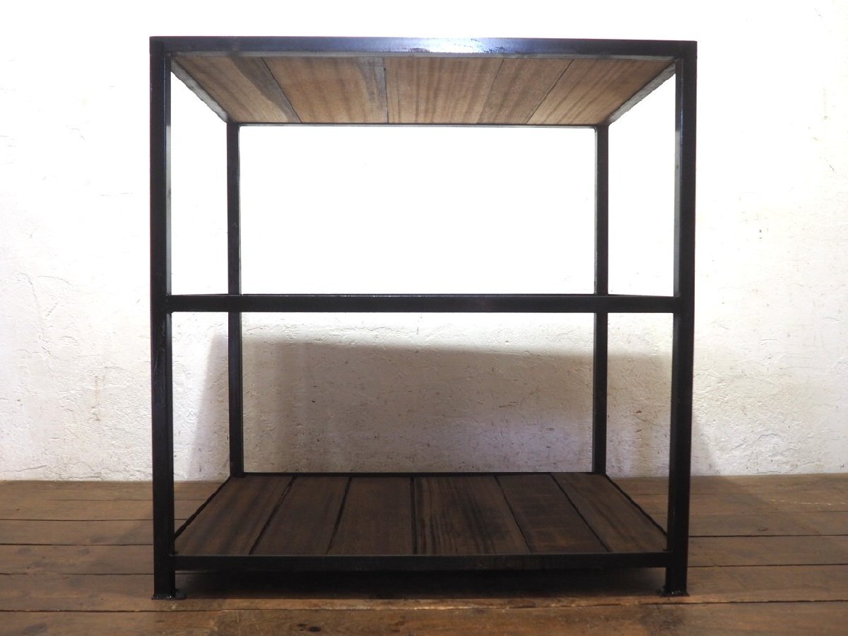タ荷U0612◆H103,5×W100×D60(cm)◆ビンテージ◆古い木と鉄枠のアイアンラック◆工業系 陳列台 飾り棚 インダストリアル レトロR(ヤD)松