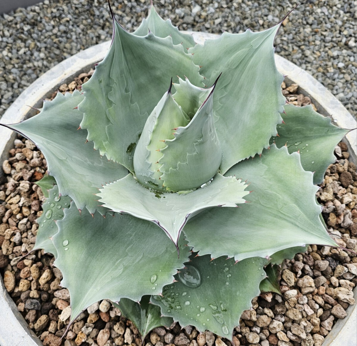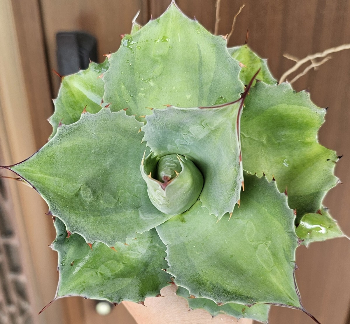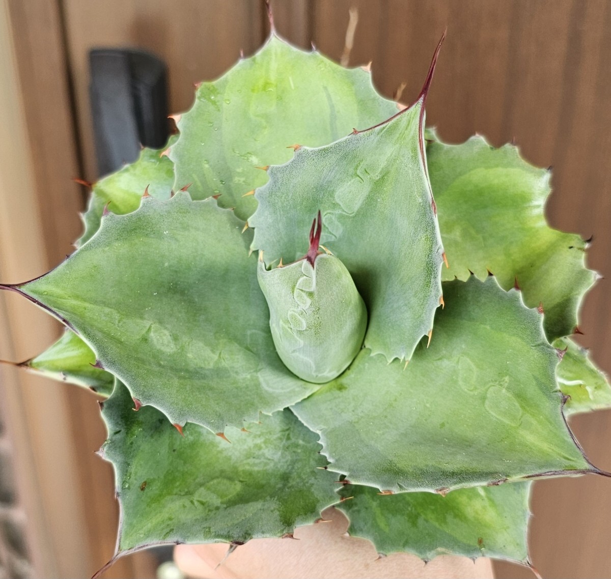 写真の1枚目から2枚目が出品株です。きちんとした血統のオバティホリアドワーフの斑入りです3枚目以降の写真と同血統(同DNA)の斑入り株。安定した淡い中斑を展開し、葉の裏側にもきちんと斑が入ります。約18㎝の株となります。オバティホリアドワーフのフォルムに中斑が入ると考えると楽しみでしかありません。この機会に是非手に入れて下さい。
