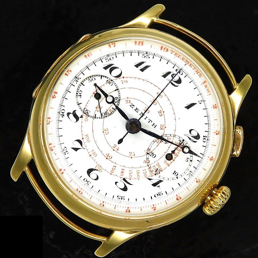 幻1920-30年代製造☆ポーセリング文字盤☆38mm18金無垢ハンターケース★ゼニス ワンプッシュクロノグラフ★名機バルジュGHT(22キャリ)