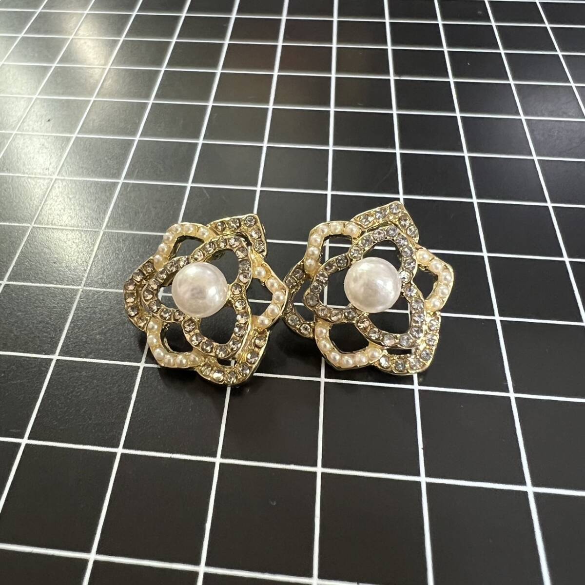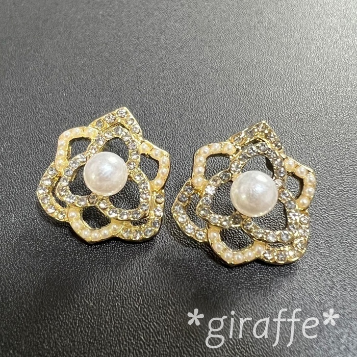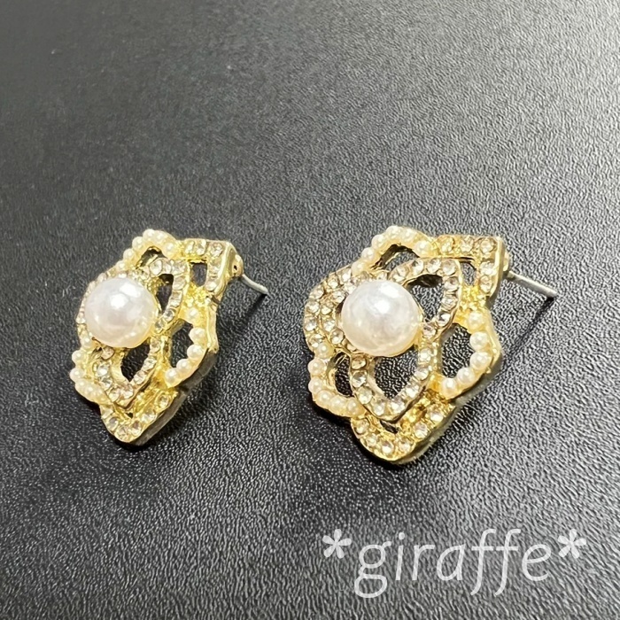 ゴールドカラーにパールとラインストーンが華やかなデザインのスタッドピアス。