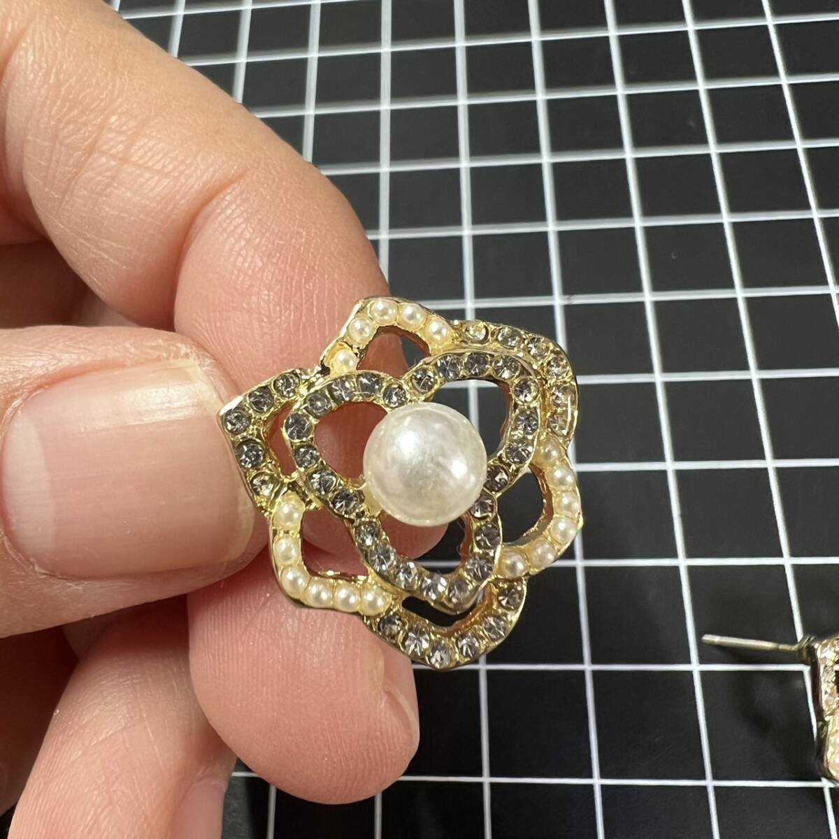 B572 匿名配送 ピアス レディース フラワー 花 パール ラインストーン ゴールド s925 フォーマル スタッドピアス