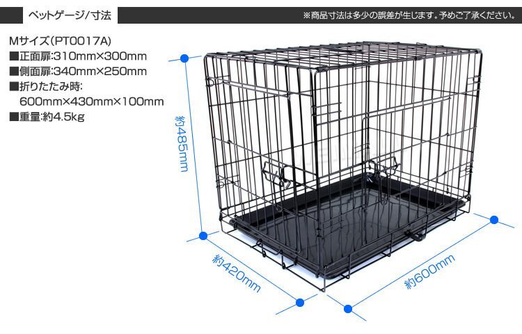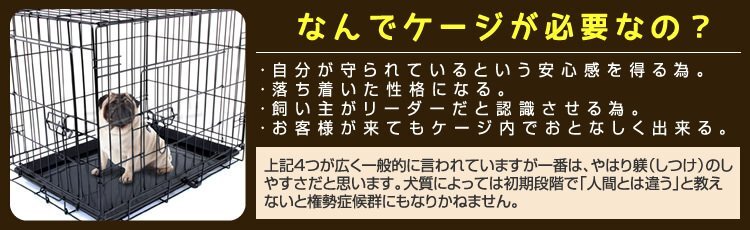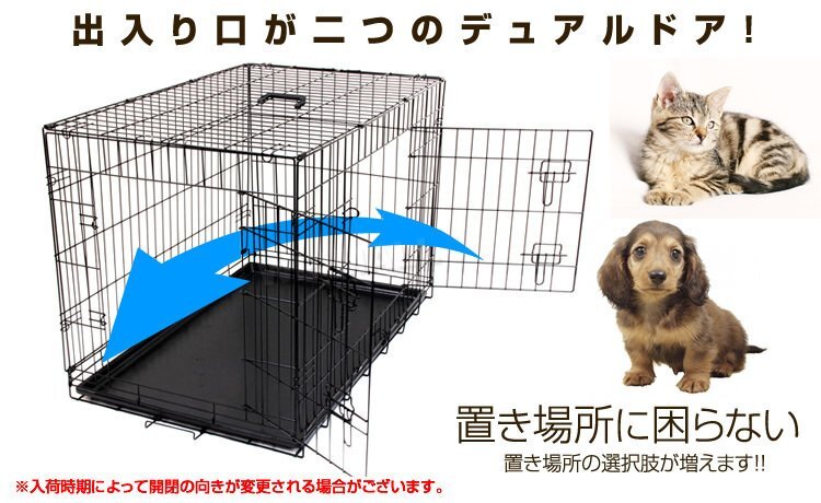 お留守番や、しつけに最適! 移動に便利な折りたたみ式ペットケージ。 本体はネジ等を一切使用せず、パタパタっと開くだけの簡単組み立て式です。 折りたたむことができるので、使わない時の収納や移動する時もラクラク! 日頃からケージを自宅で使用し、ワンちゃんも使い慣れることで、 お出かけ先でも安心して休むことができ、ストレスの軽減にもつながります。 留守中やワンちゃんから目を離す時、いたずらによる怪我や事故の防止にも役立ちますし、 緊急時の避難用にも重宝します。 【商品仕様】 カラー:ブラック サイズ(約):60cm×42cm×48.4cm (折りたたみ時(約):60cm×43cm×10cm) 材質:スチール、ABS樹脂 重量(約):4.5kg 参考サイズ:ミニチュアダックスフント・コーギー 等 【注意事項】 ・こちらの商品は小型犬用のケージとなります。 ・ご注文時サイズは必ずご確認ください。 ・参考サイズはあくまで目安です。 ・本製品は屋内専用です。屋外で使用すると錆や変色の原因となります。 ・サイズ間違い、イメージとの違いによる返品、交換は一切行っておりません。 ・海外製品で、簡易梱包での輸入のため風防に擦れや多少の小キズなどがある場合がございますが、商品自体には問題ありませんのでご了承下さい。 ・仕様・デザインは改良のため予告なく変更することがあります。 |