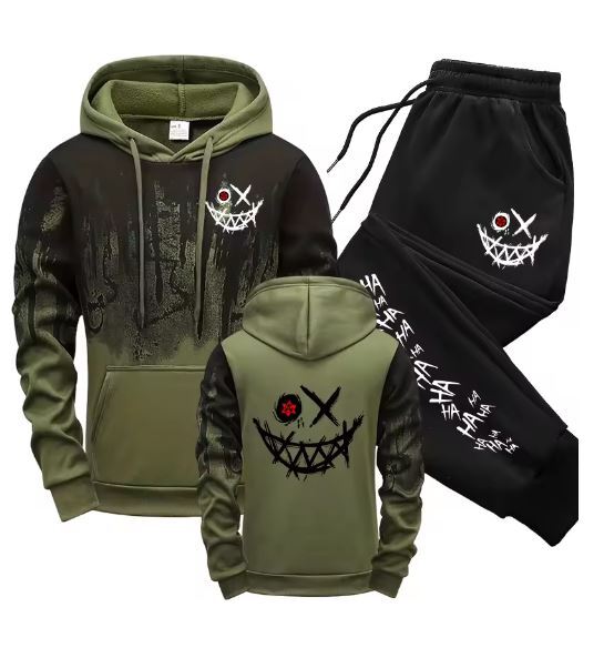 【新品・Lサイズ・Green】メンズセットフード付きスウェットシャツ スウェットパンツ デイリーカジュアルスポーツジョガースーツ