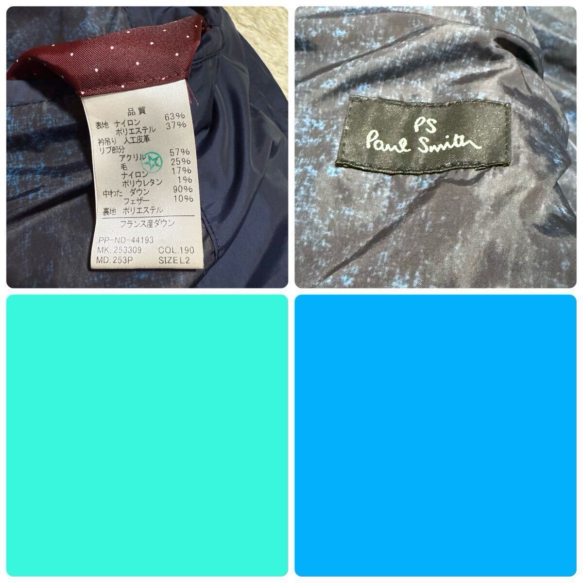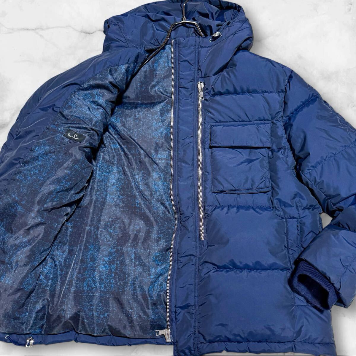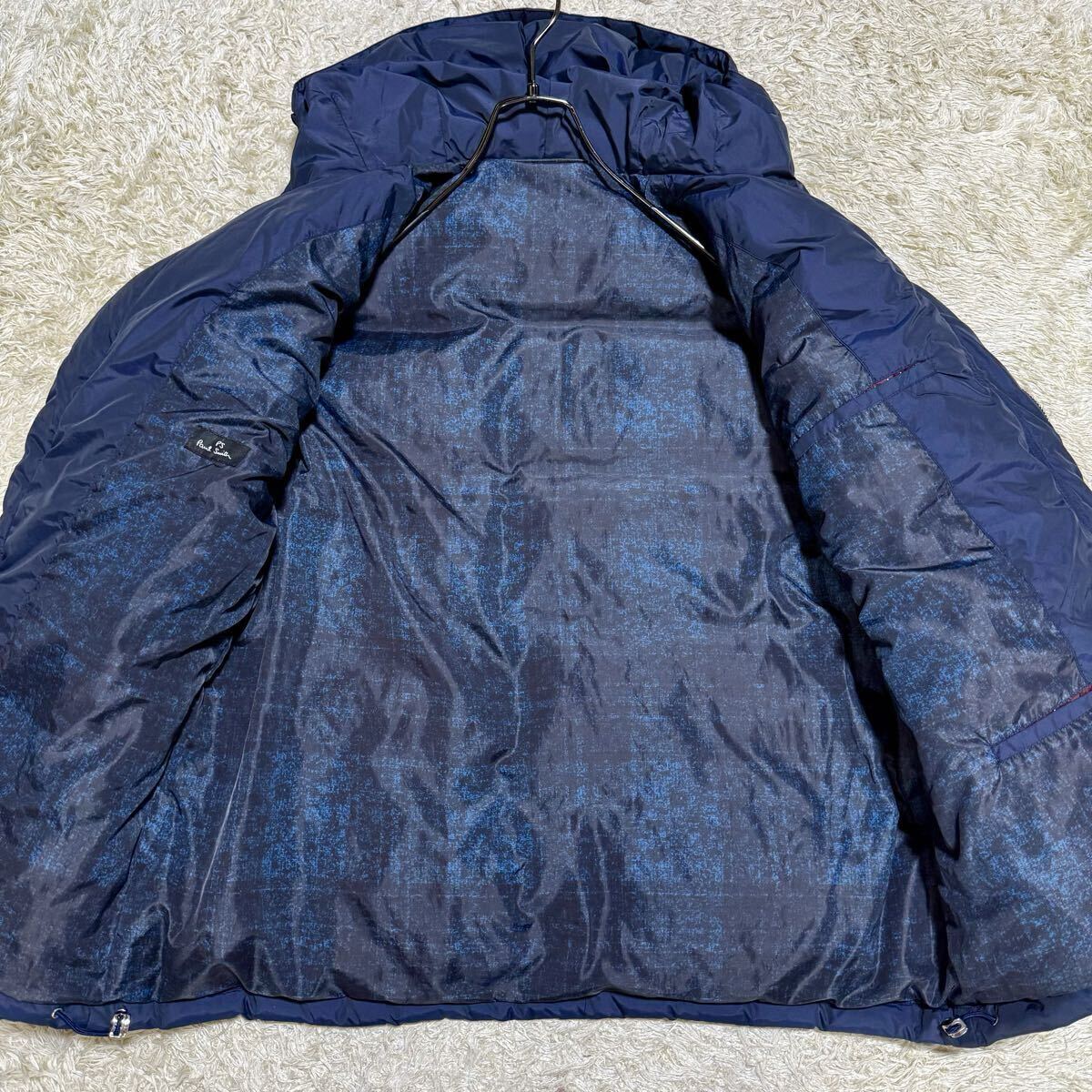 極美品/XLサイズ■ Paul Smith ポールスミス ダウンジャケット ブルゾン コート 肉厚 フランス製ダウン ダブルジップ 内側総柄 ネイビー