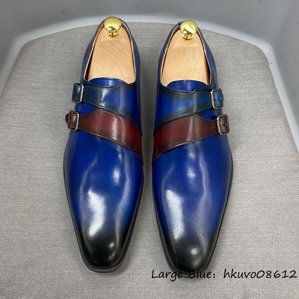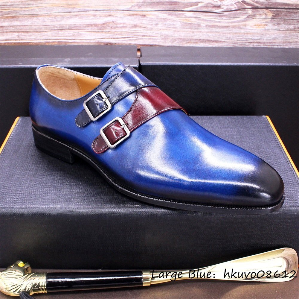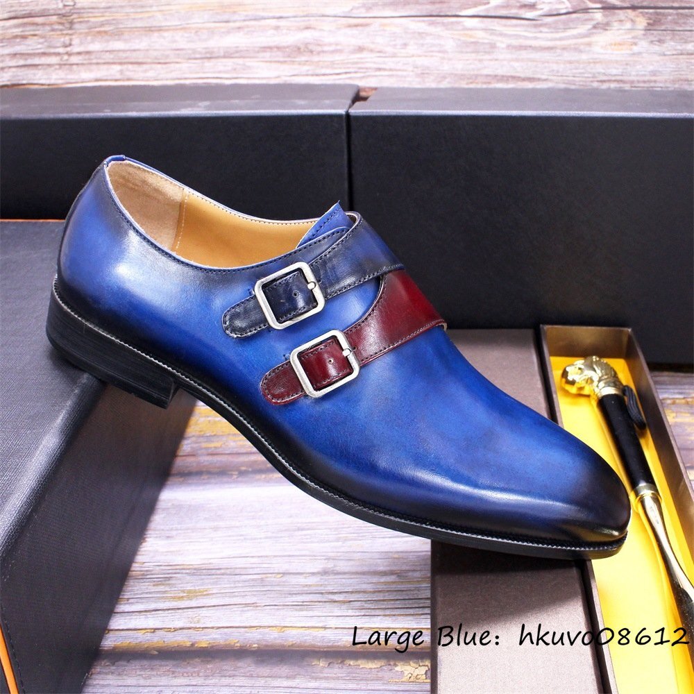 最高級◆定価9万 ビジネスシューズ 新品 ダブルモンクストラップ メンズ 手作り 本革 レザーシューズ 牛革 紳士靴 宴会 フォーマル 24.5cm