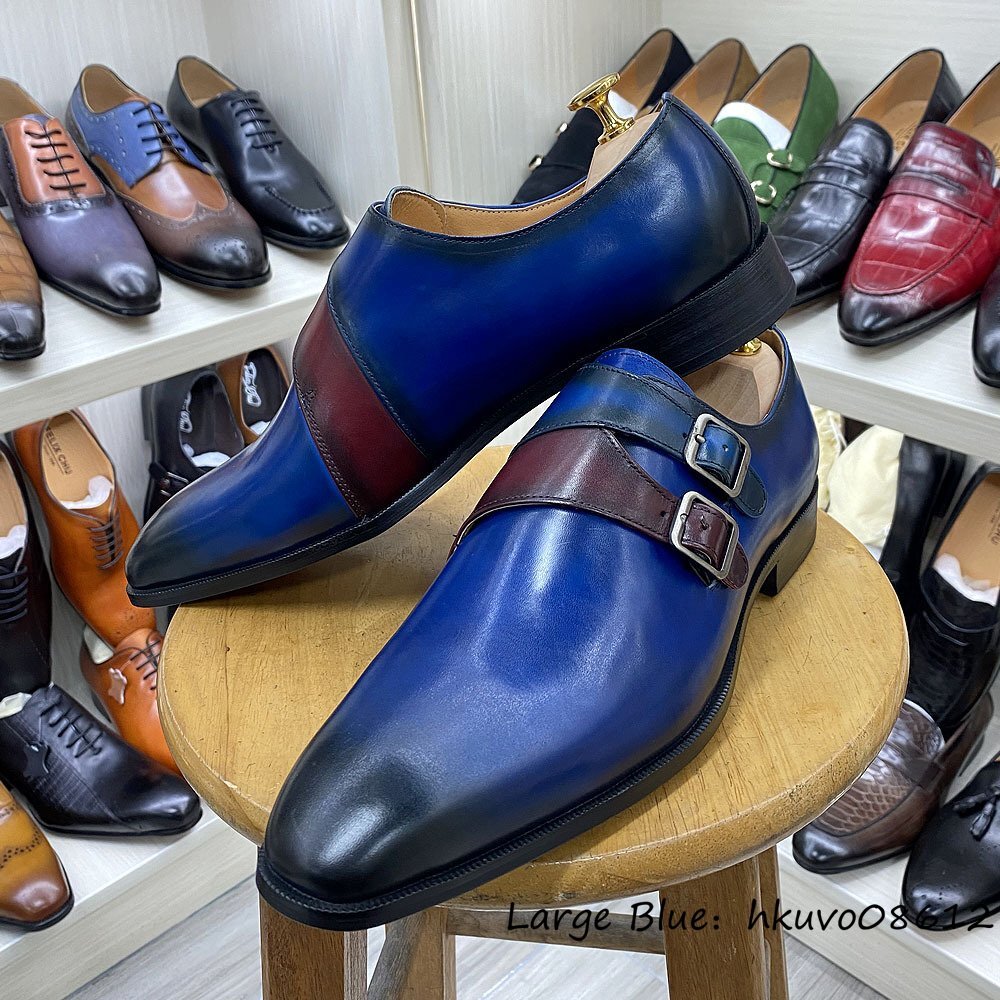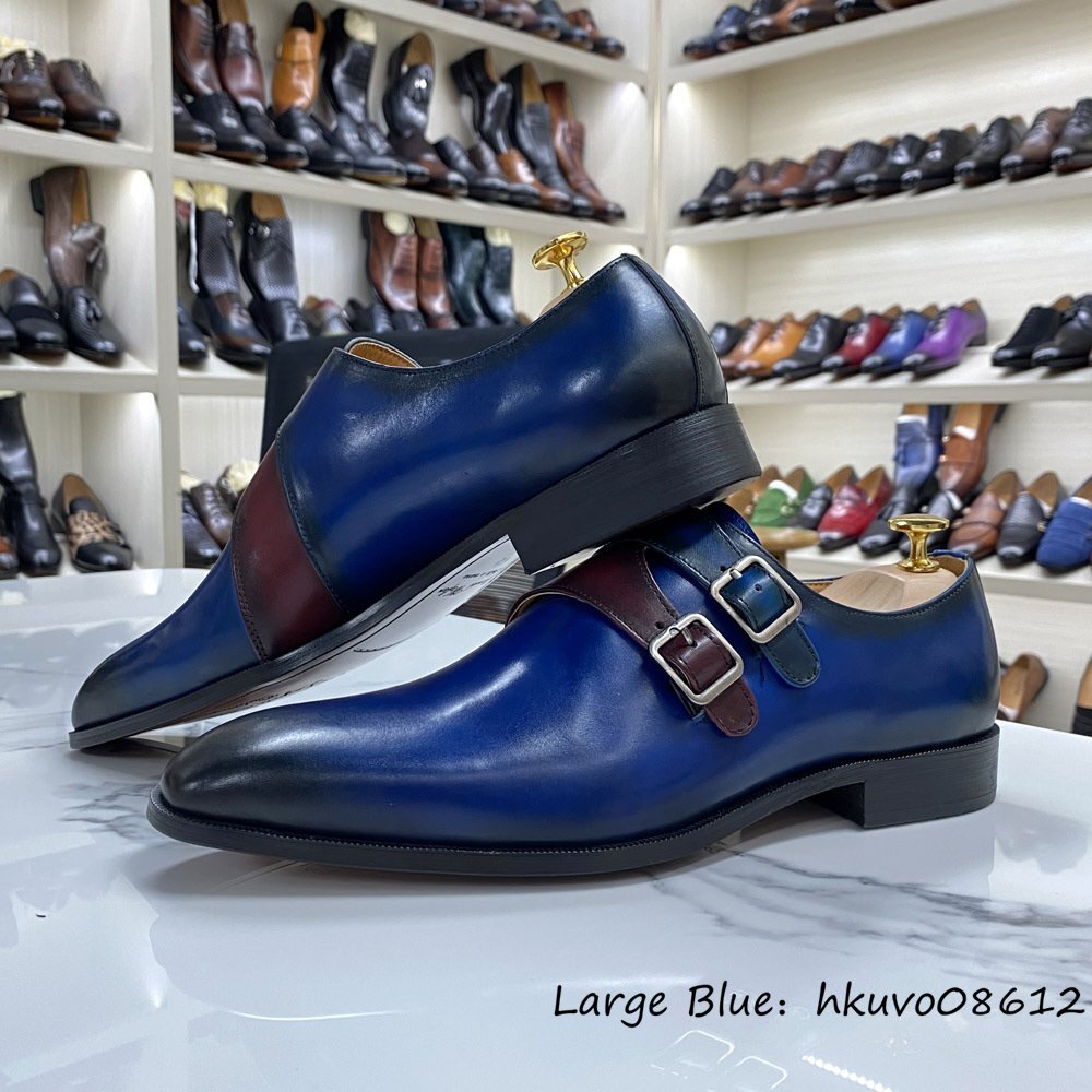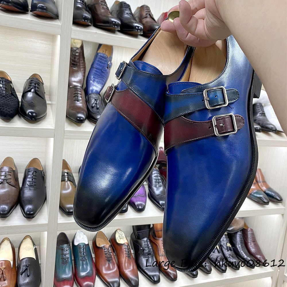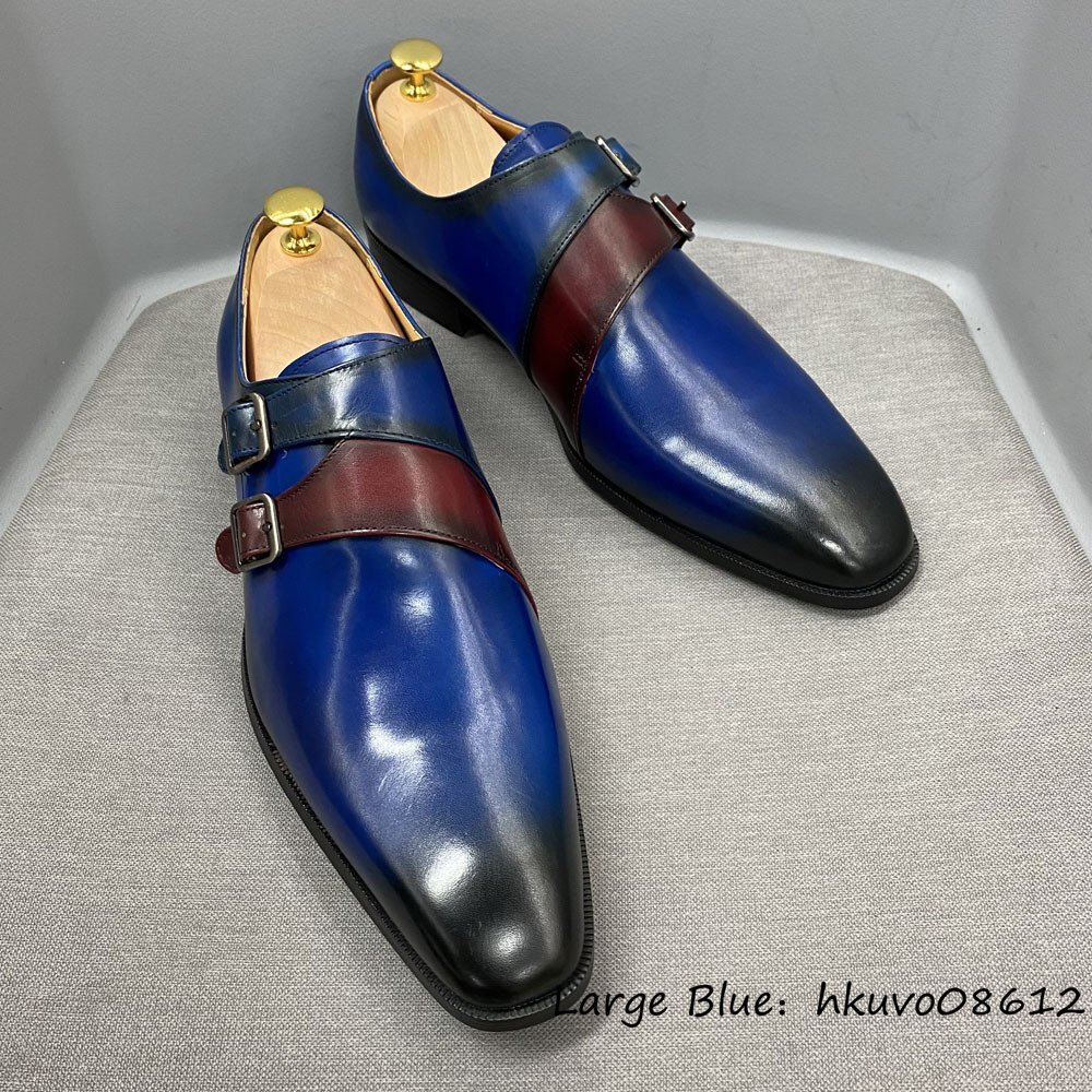 最高級◆定価9万 ビジネスシューズ 新品 ダブルモンクストラップ メンズ 手作り 本革 レザーシューズ 牛革 紳士靴 宴会 フォーマル 24.5cm