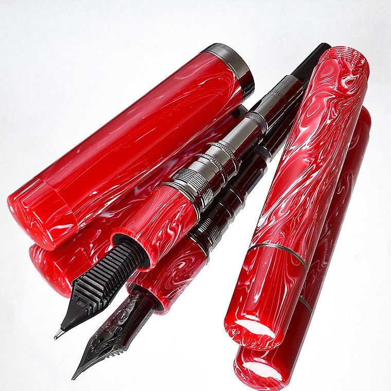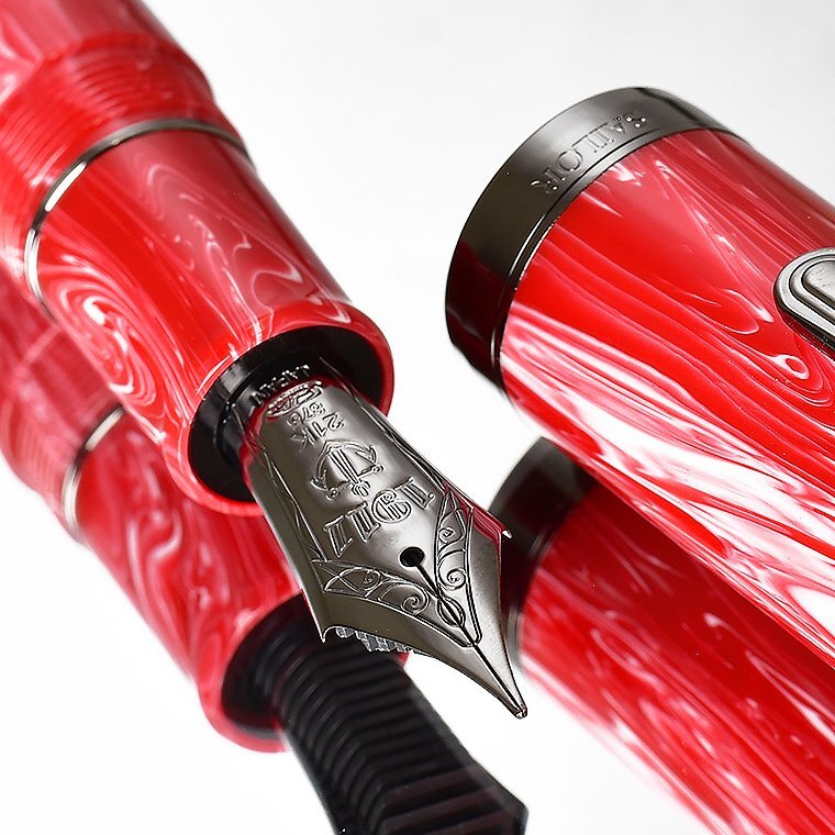 Luminous shadow/ルミナスシャドー万年筆 「光と影」を感じさせるマーブル模様 アクリル切削材の万年筆 ダスクレッド ペン先:M(中字) 未使用新品 1円スタートお買い得品! いよいよ残り僅かです!お見逃しなく ![]() SAILOR Luminous shadow / 21K Fountain pen Luminous shadow(ルミナスシャドー)のコンセプトは「光と影」 カラーリングのテーマは「光と影を感じる自然の情景」 刻一刻と変化し続ける自然のワンシーンをモチーフとしています。 光と影より抽出された色が混ざり合うカラーリング、 複数の色を混ざり合わせて生まれるマーブル模様が特徴です。 ![]() この万年筆は、セーラー万年筆独自の超大型21金、ブラックIP仕上げのペン先を搭載、 Luminous shadow(ルミナスシャドー)は光と影を感じさせるマーブル模様の アクリル切削材の軸を組み合わせた、まさに ”芸術品” 万年筆です。 この万年筆は、同じ絵柄が二つとなく、削り方によって多様な表情を見せてくれます。 ![]() ペン先は21金。これほどまでに大きなニブは、国産の万年筆では他にないと思います。 ブラックIP仕上げのペン先が剣のような鋭さと輝きを放っており魅力的で つい見とれてしまうほどの美しさです。しかしただ大きいだけではありません。 セーラーの技術力とこだわりを実感できるニブとなっています。 今回の出品ペン先はM(中字)です ![]() カラーリングのテーマは「光と影を感じる自然の情景」 フォググレー、ダスクレッド、ストームブルー、グローブグリーンの4色が販売されています。 どの色も、自然の美しさや神秘さを表現しています。 【フォググレー】 立ち込める霧にうっすらと見える山影 【ダスクレッド】 雲の切れ間から光が漏れる夕暮れ 【ストームブルー】 嵐の夜、渦巻く大気に稲妻が走る 【グローブグリーン】 鬱蒼とした木立に伸びる幹の影 今回の出品カラーは:ダスクレッドです ルミナスシャドーのアクリル材は、一柄に複数の色を指定し、その色の割合によって柄の出方が 変わってきます。 実際に作らないと完成形がわからないので、まずは想像しながら色指定を行い、何度かサンプルを 作製して決められたそうです。 ![]() スタイリングでは、蓋栓の円錐形状へのこだわり、 シンプルなストレート形状の中でアクセントになりつつ、主張しすぎない角度、 さらにパッケージは、ルミナスシャドーの鮮やかな軸色が際立つように黒でまとめられています。 蓋を開けるとより一層雰囲気を感じられるデザインになっています。 ルミナスシャドー 万年筆があなたの筆記や書簡に一段と華やかをもたらしてくれそうです。 また、この万年筆は、高級感のある専用パッケージに入っていますので、 プレゼントにも最適です。 この機会に、ルミナスシャドー 万年筆を手に入れて、”光と影の世界を楽しまれてみては” いかがでしょうか、 ![]() こちらは未使用新品の商品ですので、陳列されてたままを今回はお買い得な1円スタート として出品させていただきます。 たくさんの入札をお待ちしております。 ![]() ********************************************************************** ≪詳細 ≫ SAILOR Luminous shadow(ルミナスシャドー)万年筆 出品カラー :ダスクレッド ペン先 : 21金・超大型 方式 : コンバーター・カートリッジ両用式 ペン先仕上げ: ブラックIP仕上げ 蓋・胴・大先: アクリル切削材 金属部品 : ブラックIP仕上げ 本体サイズ : φ21.4×152mm(クリップ部含む) パッケージ : 専用パッケージ(196×123×55mm) 付属品 : サービスカートリッジインク(ブラック) 2本、 万年筆用インク吸入器コンバーター(ブラックIP 仕様 1個/本体内蔵)、 クリーニングクロス 1枚、商品説明書 1部、万年筆使用説明書 1部、 万年筆品質保証書 1部 定価 :¥100,000(税抜) ¥110,000(税込) 未使用新品 金価格の高騰により、21K.14Kなどのペン先万年筆自体の価格も値上がり しております。今回は1円スタートの大変お買い得商品での出品です! この機会に是非ご検討くださいませ。買い時の”チャンス”かと思います。 どうぞ宜しくお願い致します。 ※今回は店舗にて展示しておりました未使用展示品の出品となります。 傷などはなく、綺麗な未使用品を1円で出品致しますので、 ですので大変お得です!多くのご入札をお待ちしております! またマーブル模様には個体差がございます事も予めご了承ください。 ********************************************************************** |
