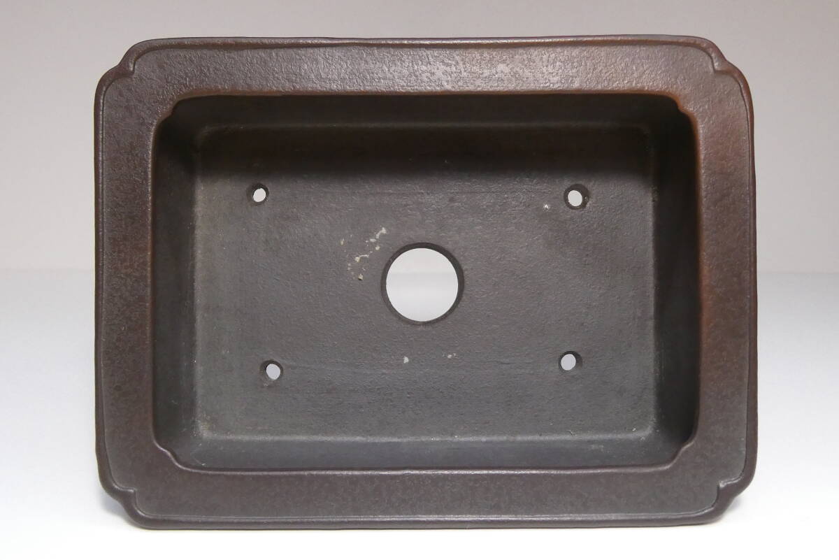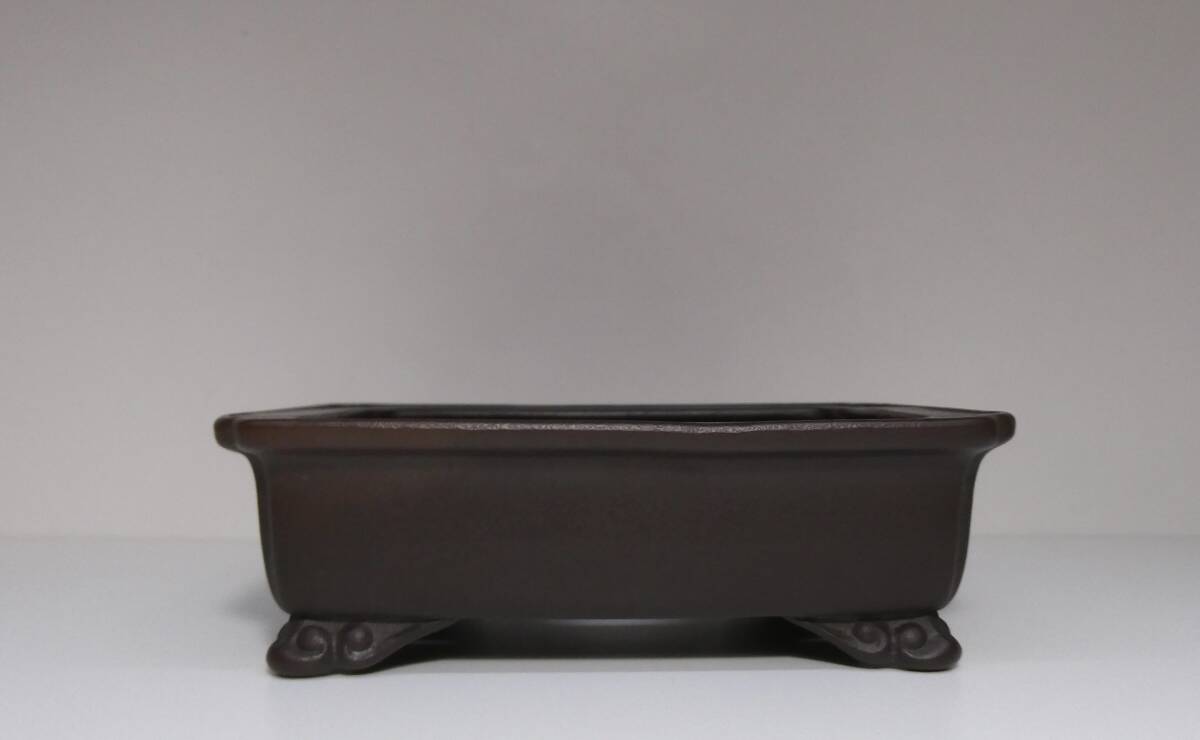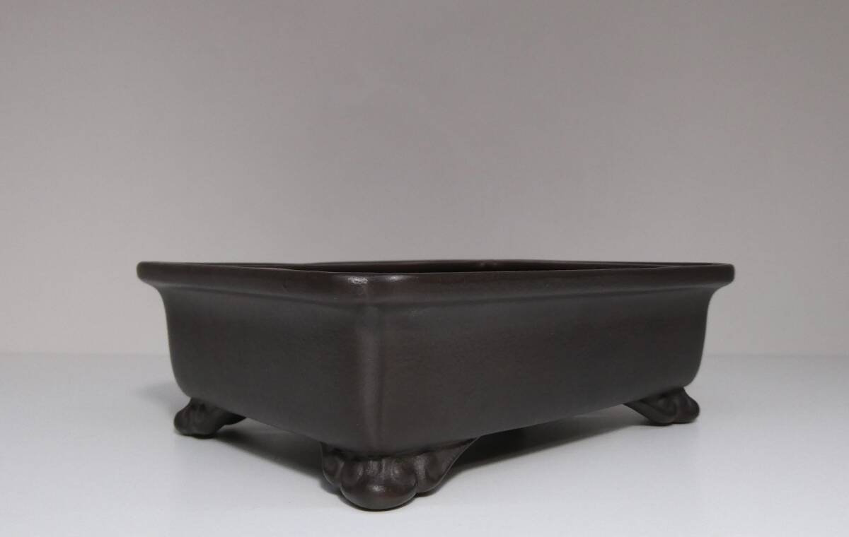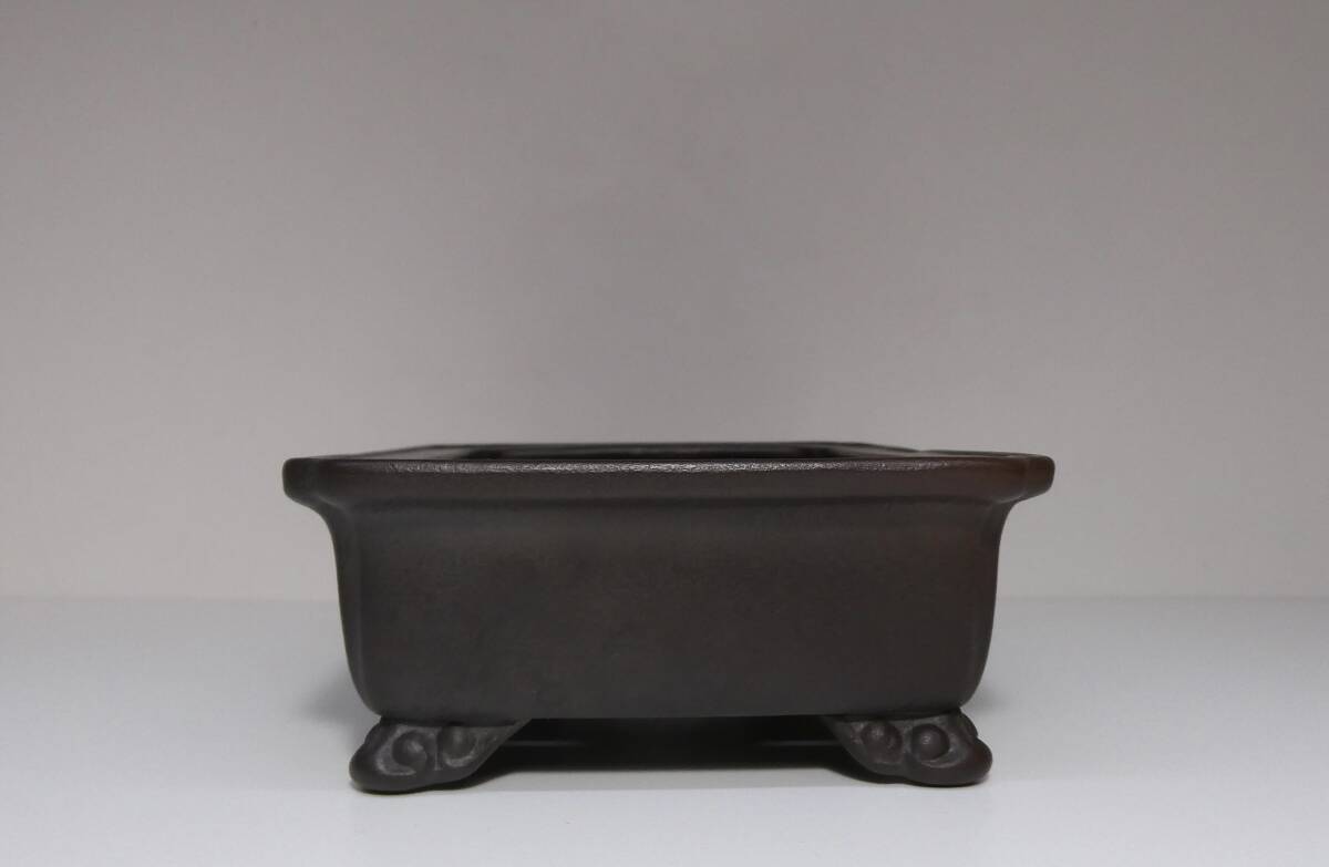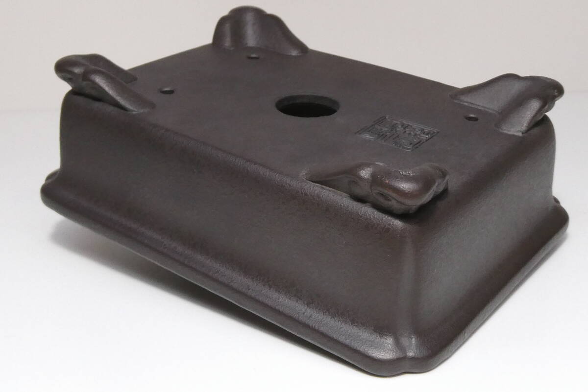 ▼峰輝堂 紫泥外縁隅入雲脚長方鉢 13×9.7×4.1cm[峰輝堂造]