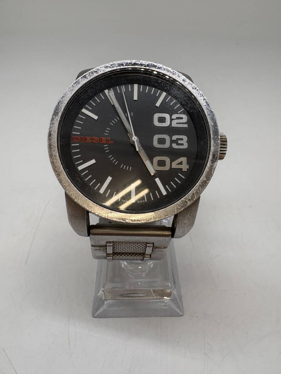 S10452〇 DIESEL ディーゼル DZ-1370 腕時計 メンズウォッチ 黒文字盤 クォーツ Quartz シルバーカラーベルト