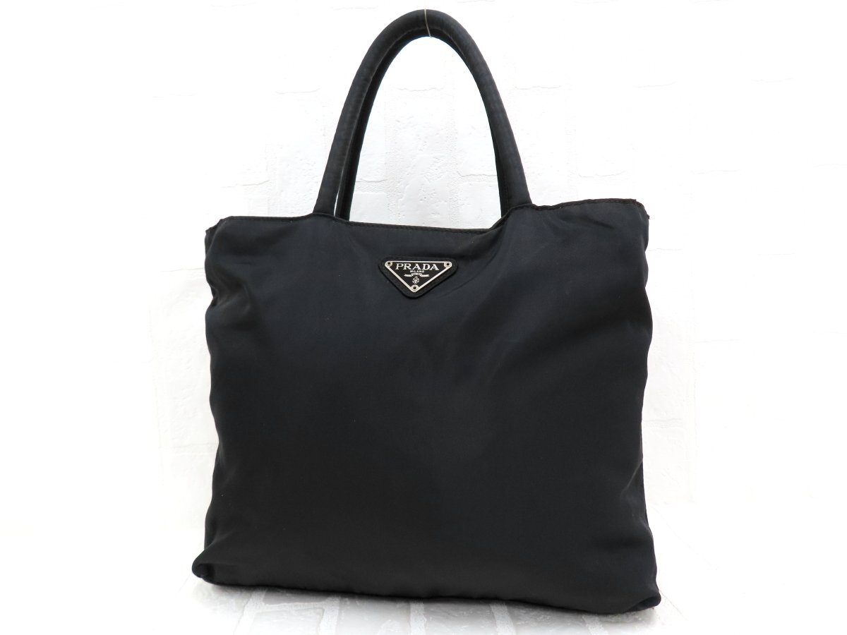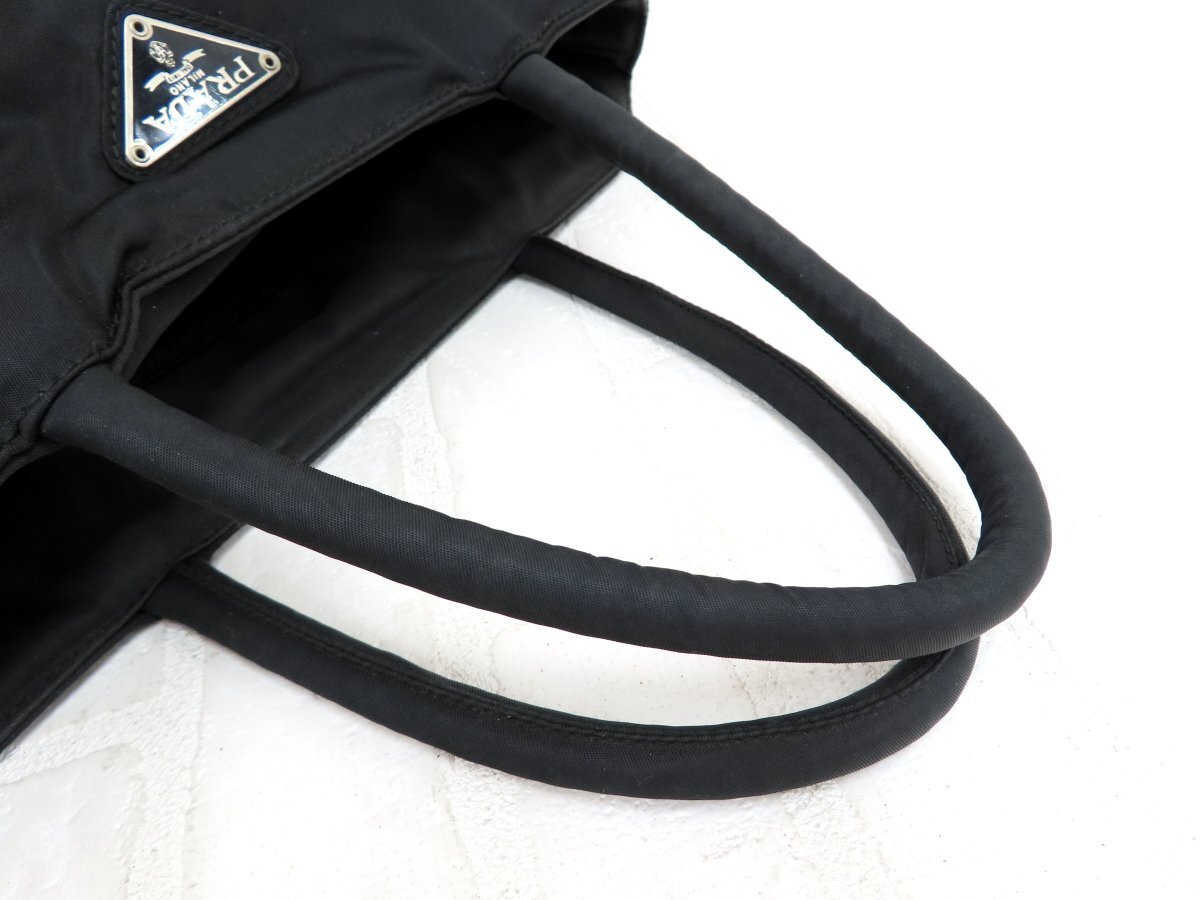 ◆美品◆PRADA プラダ◆ナイロン◆ハンド トート バッグ◆ブラック SV金具◆イタリア製◆ヴィンテージ◆腕掛け◆三角ロゴプレート◆A13621