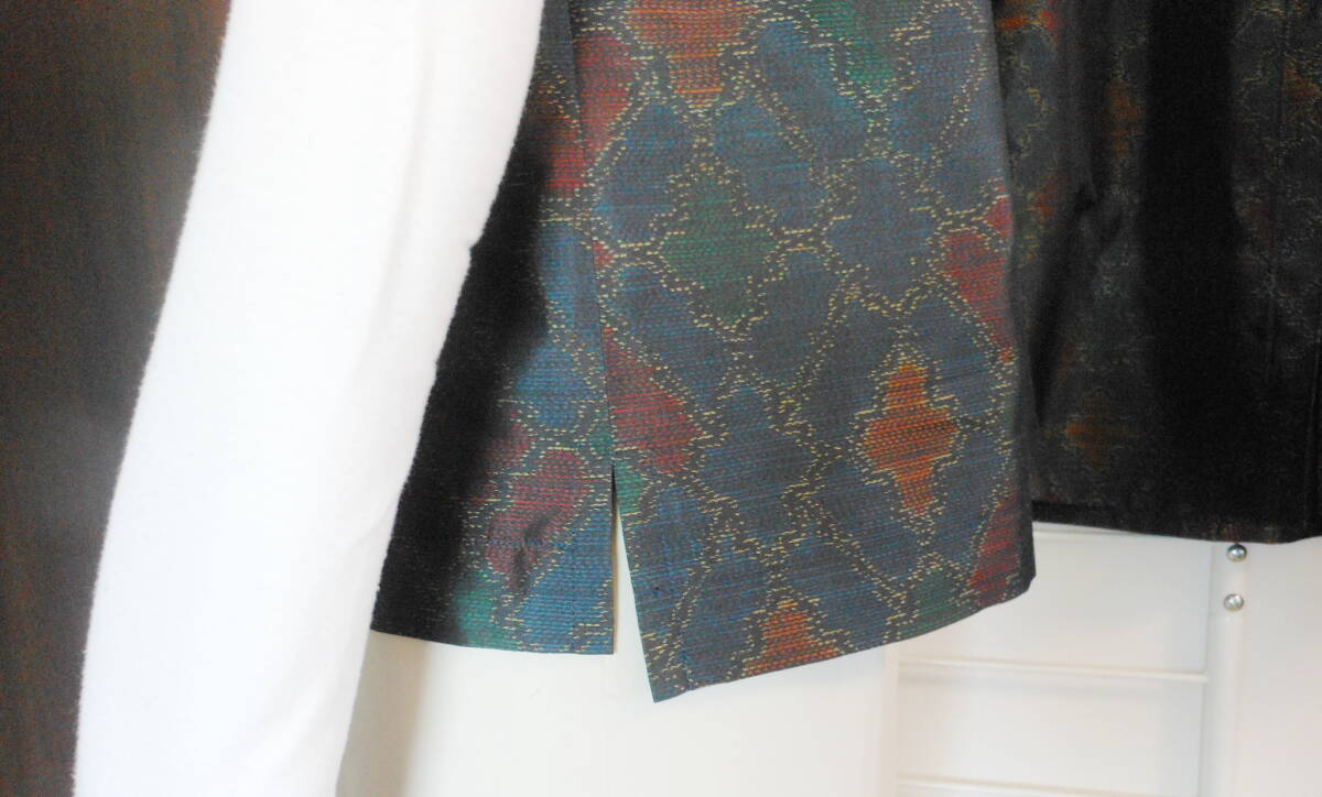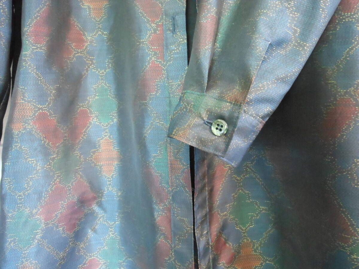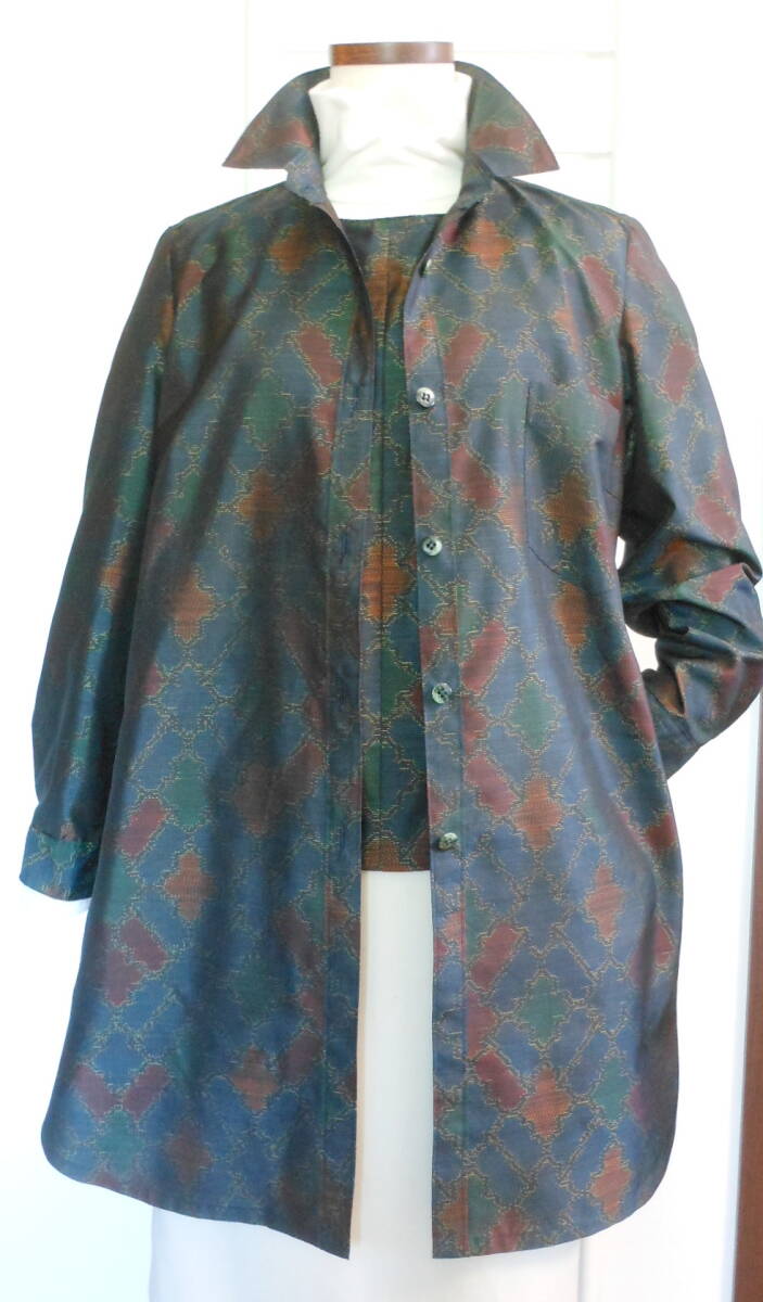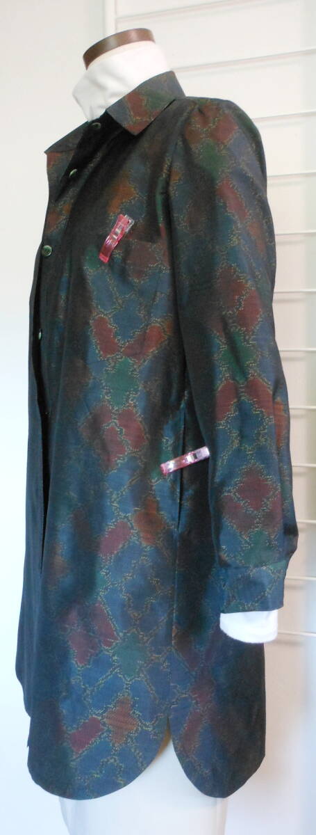 着物リメイク☆正絹の大島紬からアンサンブル インナー付きシャツジャケット 台衿付きシャツカラー 裾ラウンド ポケット3か所