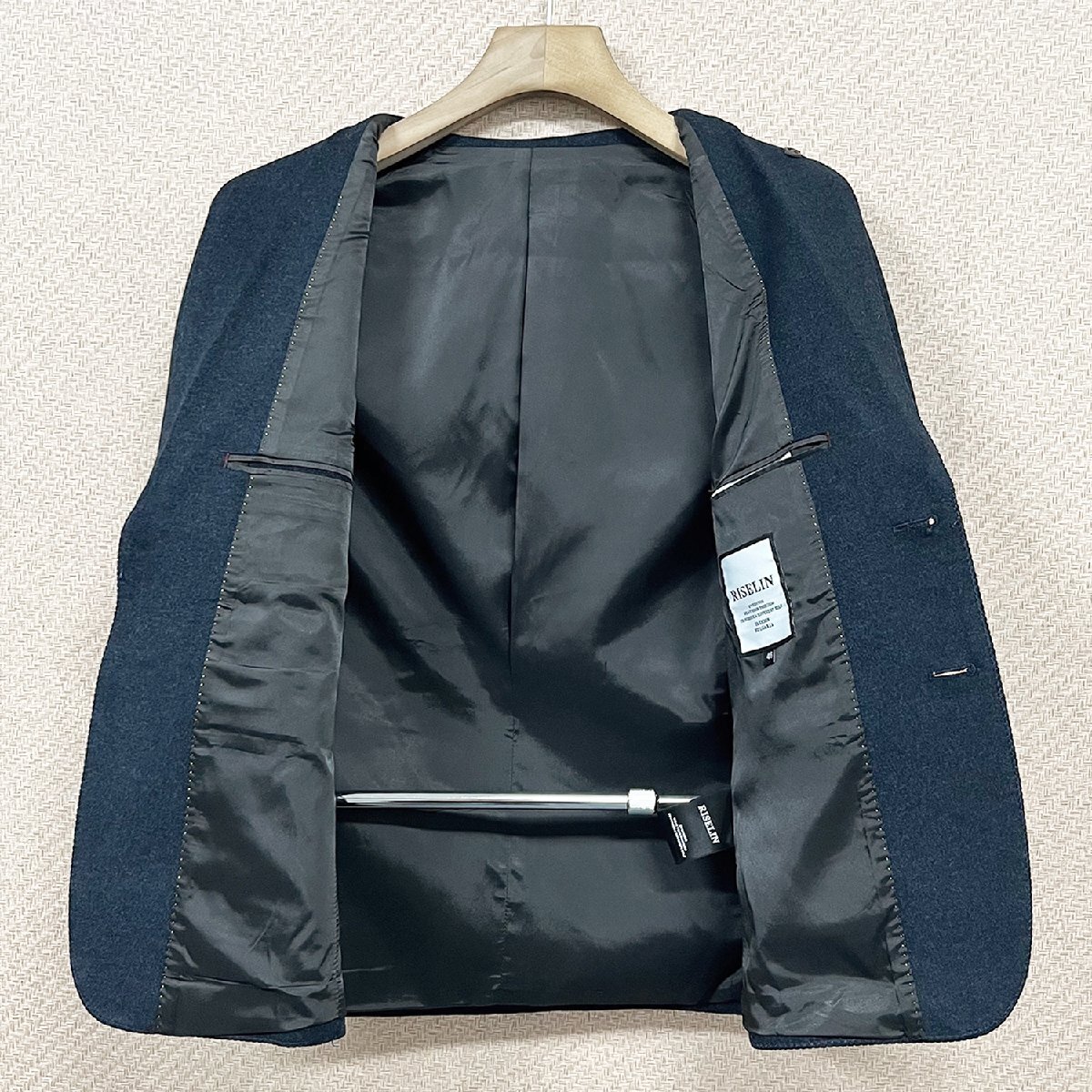 上品ヨーロッパ製※定価7万◆ブルガリア発※RISELIN テーラードジャケット カシミア 柔らか 保温 ブローチ スーツ ブレザー フォーマル 紳士 XL/50サイズ