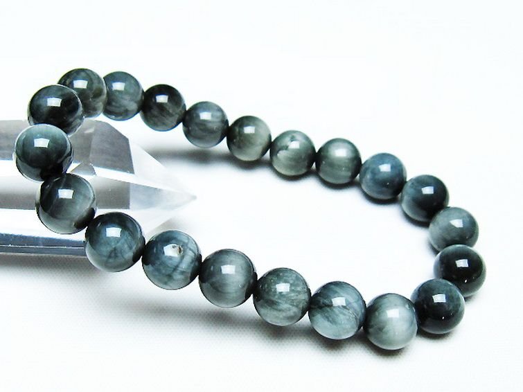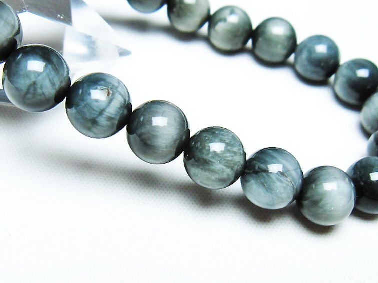 ■商品名: イーグルアイブレスレット ■商品ID: T156-6697 ■商品重量:約 19.6g ■商品サイズ:内周約:154mm(±5mm)粒直径約:9mm(±0.5mm) 【イーグルアイ(鷲目石)】 イーグルアイは和名では鷲目石(わしめいし)といいます。「クロシドライト」という鉱物と石英で構成され、大きい括りでは水晶のグループに属しています。 イーグルアイは古来より神の目と信じられ、「すべてを見通し、災いを祓い幸運をもたらす石」として儀式やお守りなどに用いられてきました。 古代のエジプトやチベットでは神仏の像の目にイーグルアイをはめ込んだり、ローマ人は霊力を高めるお守りとして珍重していたそうです。 勝負運・仕事運を高めて幸運を引き寄せる強力なパワーを持つとされ、仕事でチャンスをつかみたいという方、スポーツや学業で大きなイベントを控えている方にはお守りとして身につけることで心強いサポートが得られるでしょう。 またホルモンバランスの乱れや体の不調を整える身体的な効果も期待され、特に眼精疲労の癒しや視力回復などの目に関わる部分にも良いとされています。 ⇒ イーグルアイをもっと詳しく ◆ワンポイント情報 タイガーアイに似ているためイーグルアイは「グレータイガーアイ」の別称もありますが、タイガーアイとイーグルアイは鉱物としては別の物になります。 |
