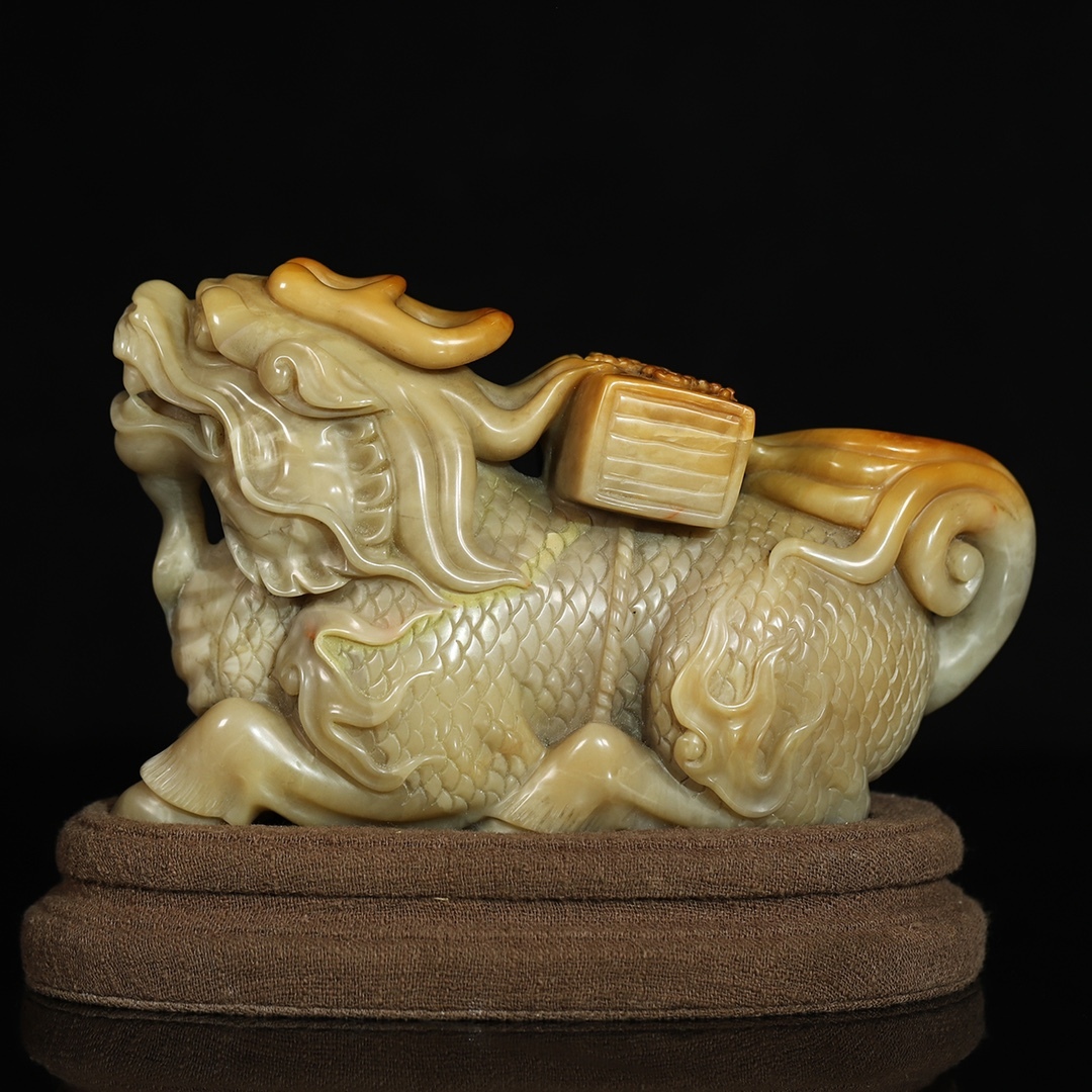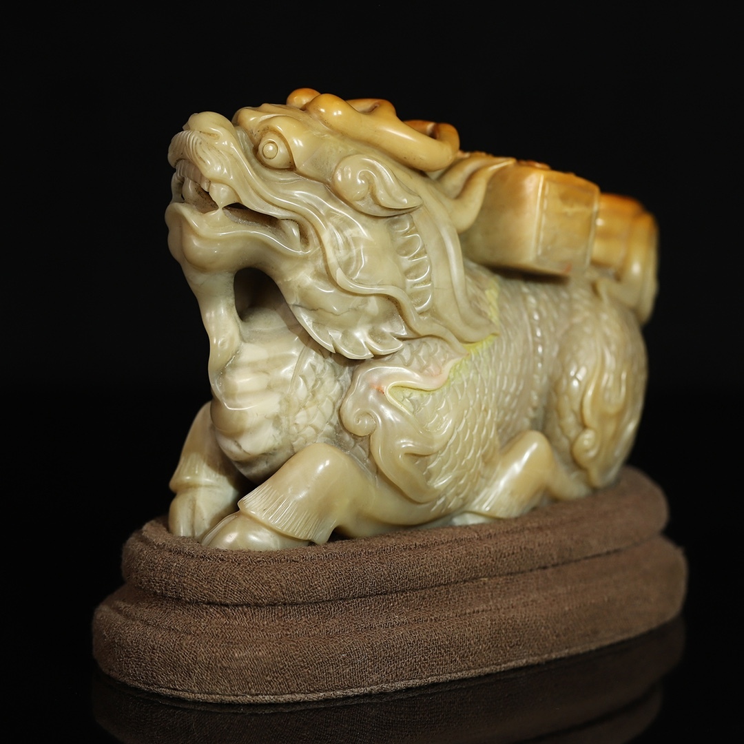 *珍品旧蔵* 清 寿山石 彫刻 麒麟神獣 置物 天然石 手彫 篆刻 極細工 中国古玩 骨董品 古美味 H410